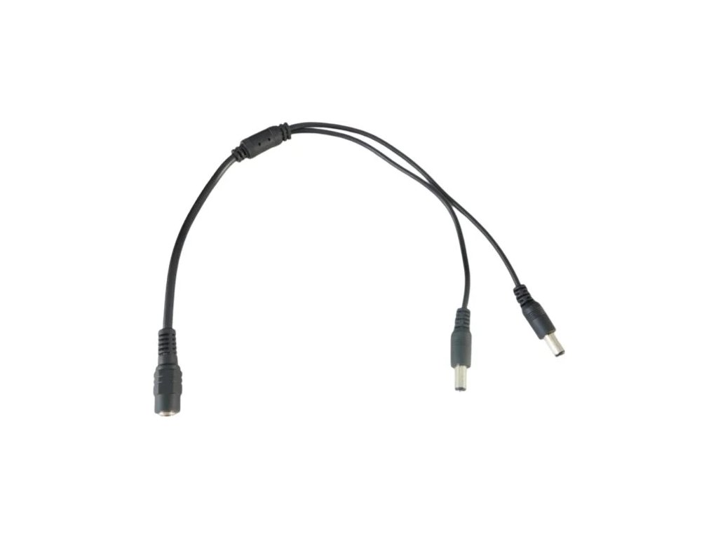 DC kabelový rozbočovač s 2 výstupy. Vstupní i výstupní konektory mají rozměry 2.1/5.5 mm. Celková délka kabelu je 40 cm a zvládne maximální zatížení 5 A na vstupu a 3 A na každém výstupu rozbočovače. Rozbočovač můžete použít při napájení více zařízení jako jsou LED světla, bezpečnostní kamery, routery, switche a další elektronická zařízení.