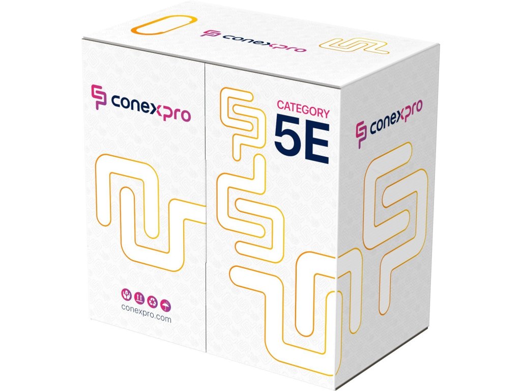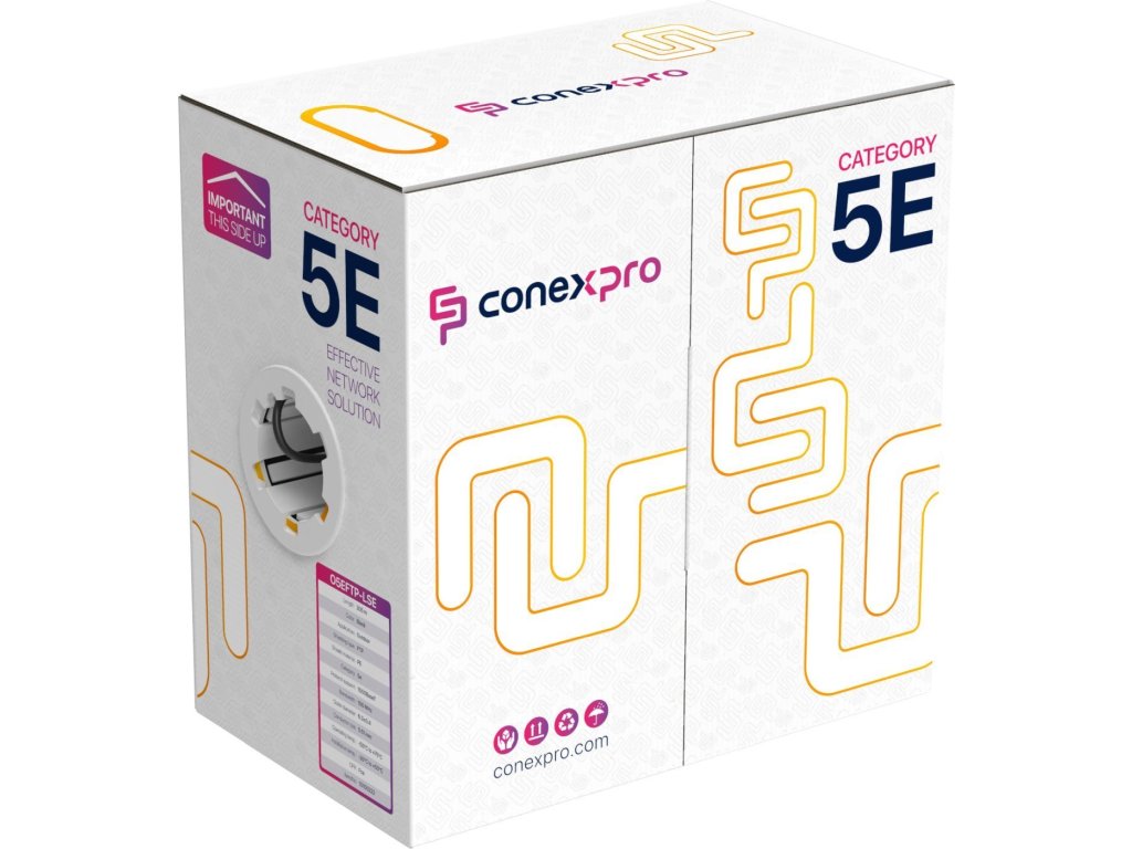 FTP kabel kategorie 5e značky Conexpro je navržen pro venkovní rozvody strukturované kabeláže a bez problémů splňuje mezinárodní standardy včetně všech aktuálních dodatků. Kabel umožňuje přenos dat rychlostí až 1 Gbps (1000 Base-T). Plášť má černou barvu, je vyroben z PE materiálu, se stíněním a uzemňovacím drátem pro připevnění ke konektoru s očkem. Vodiče mají hliníkové jádro a jsou potaženy vrstvou mědi, tzv. CCA s celkovým průřezem AWG24. Kabel je balen do kvalitní kartonové krabice s moderním designem a je označen po každém metru od 0 do 305 m.