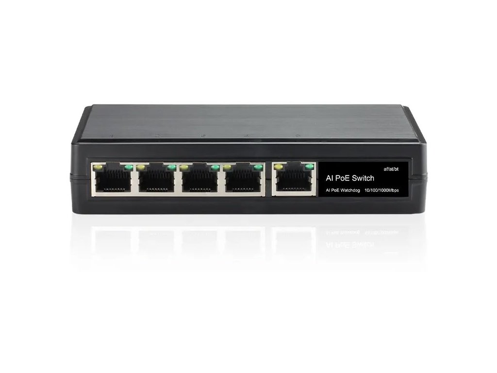 Gigabitový PoE switch v plastovém šasi napájený pouze přes PoE, bez managementu, s 5x Gigabit porty je zařízení určené do míst bez napájení a je vhodný pro napájení až 4 zařízení (kamer / Wi-Fi AP). Switch nabízí tichý bezventilátorový chod, 5x 10/100/1000 Mbps z čehož 4 LAN porty podporují funkci PoE (802.3af/at, 30 W / port, port č.4 podporuje dokonce 802.3af/at/bt - 60 W / port) s celkovým PoE budgetem 60 W (záleží na vstupním napájení), nízkou vnitřní spotřebou a napájením pouze přes PoE (802.3at/bt).