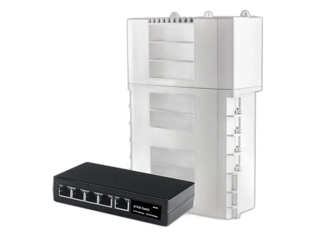 Gigabitový PoE switch s venkovním boxem, napájený pouze přes PoE, bez managementu a s 5x Gigabit porty je zařízení určeno do míst bez napájení a je vhodný pro napájení až 4 zařízení (kamer / Wi-Fi AP). Switch nabízí tichý bezventilátorový chod, 5x 10/100/1000 Mbps z čehož 4 LAN porty podporují funci PoE (802.3af/at, 30 W / port, port č.4 podporuje dokonce 802.3af/at/bt - 60 W / port) s celkovým PoE budgetem 60 W (záleží na vstupním napájení), nízkou vnitřní spotřebu a napájením pouze přes PoE (802.3at/bt).