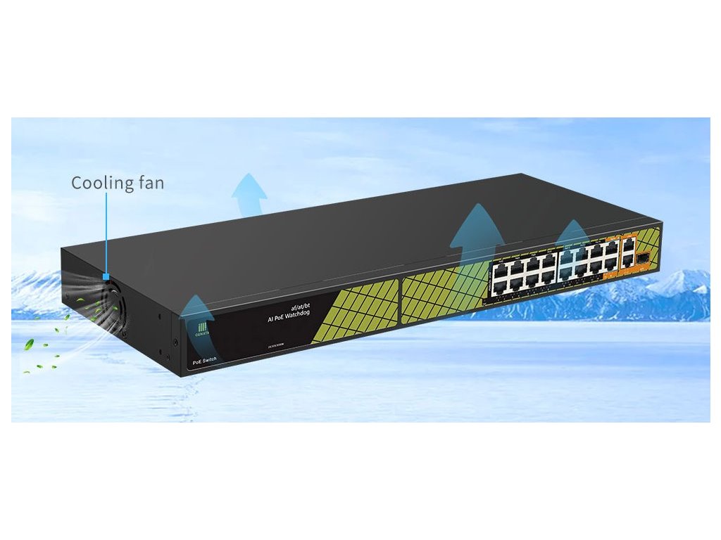 Fast ethernetový rackmount PoE switch bez managementu s Gigabitovými uplink porty a jedním combo SFP je ideální PoE switch do malých firem a větších rodinných domů a je určen pro napájení až 16 zařízení (kamer / Wi-Fi AP) s nízkou spotřebou. Switch nabízí spolehlivý chod díky integrovanému chlazení, 14x 10/100 Mbps + 4x Gigabit uplink LAN + 1x Gigabitový combo SFP z čehož 16 ethernetových portů podporuje funkci PoE (802.3af/at, 30 W / port, porty 15 a 16 podporují dokonce 802.3af/at/bt - 60 W / port) s celkovým PoE budgetem 300 W, nízkou vnitřní spotřebou a napájením přes 230V AC konektor díky věstavěnému zdroji.