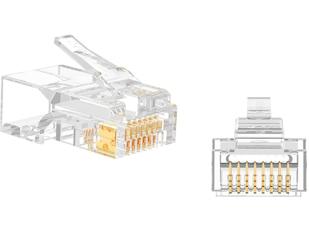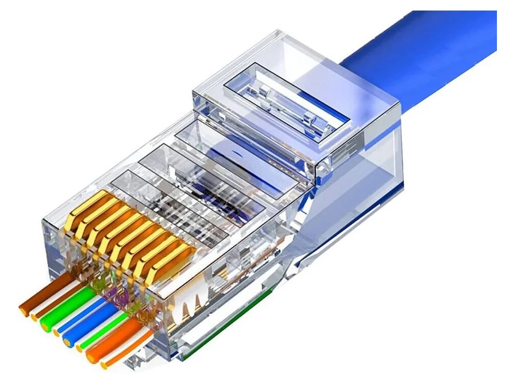 Průchozí Wire Cross datový RJ45 konektor pro strukturovanou kabeláž pro vodič typu drát. Jedná se o univerzální nestíněný RJ45 konektor třídy CAT6 se zapojením 8P8C, zajišťující efektivní a jednoduché nakrimpování konektoru na datový kabel. Průchozí konektory typu Wire Cross jsou navrženy tak, aby usnadnily práci a ušetřily čas jak začátečníkům, tak zkušeným technikům. Hlavní výhoda Wire Cross spočívá v tom, že protáhnete všech 8 vodičů skrz konektor a kromě nakrimpování dojde i k zaříznutí přebytečné délky jednotlivých vodičů díky ostrému břitu integrovanému v rukojeti kleští.