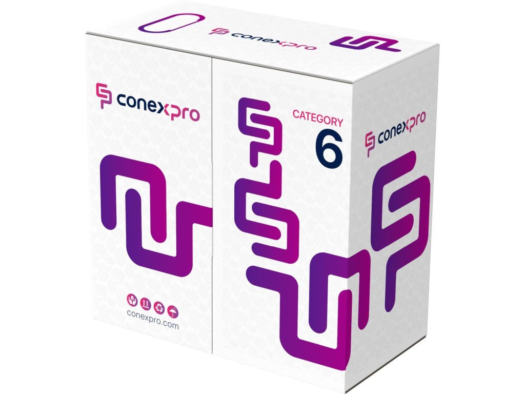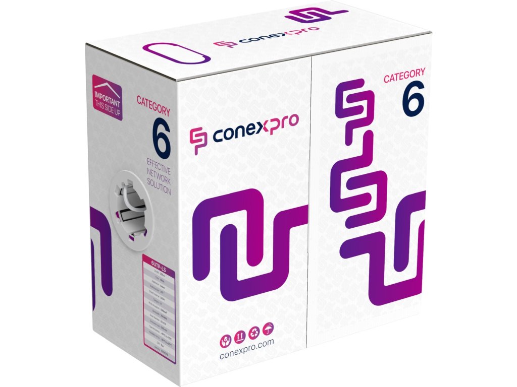 Bezhalogenový UTP kabel kategorie 6 značky Conexpro je navržen pro vnitřní rozvody strukturované kabeláže a bez problémů splňuje mezinárodní standardy včetně všech aktuálních dodatků. Kabel umožňuje přenos dat rychlostí až 1 Gbps (1000 Base-T i 1000 Base-Tx). Plášť má elegantní bílou barvu, bez stínění a je vyroben z LSZH materiálu. Vodiče jsou z kvalitního měděného drátu o průřezu AWG24. Kabel je balen do kvalitní kartonové krabice s moderním designem a je označen po každém metru od 0 do 305 m.