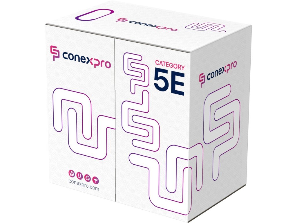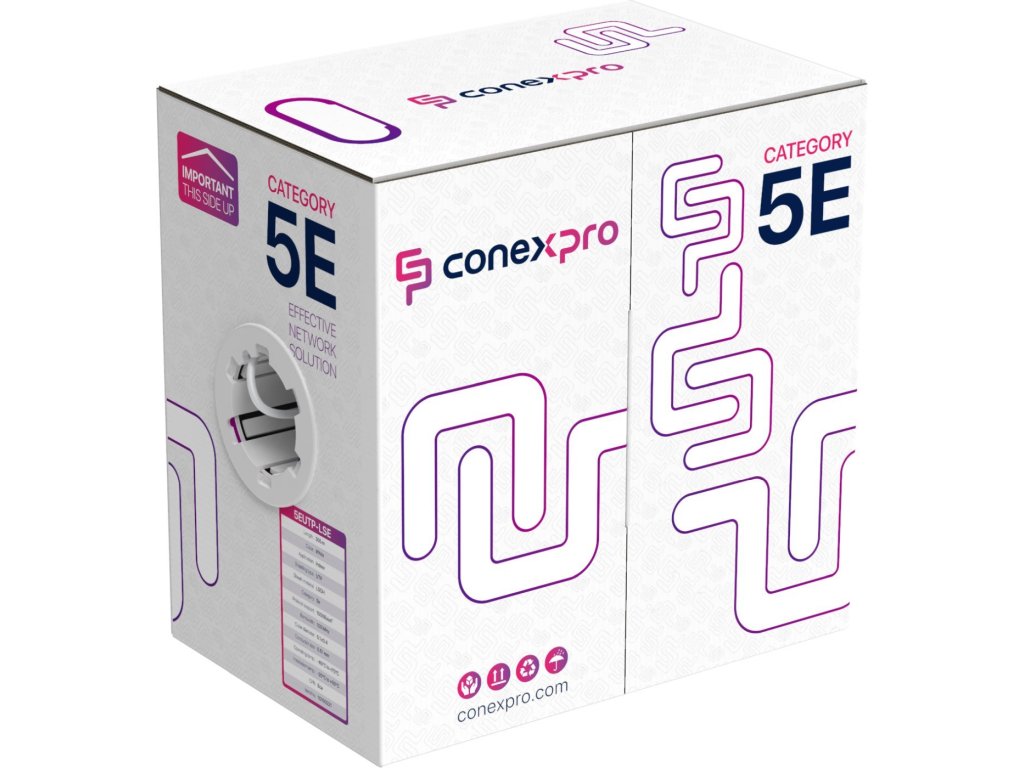 Bezhalogenový UTP kabel kategorie 5E značky Conexpro je navržen pro vnitřní rozvody strukturované kabeláže. Kabel umožňuje přenos dat rychlostí až 1 Gbps (1000 Base-T). Plášť má elegantní bílou barvu, bez stínění a je vyroben z LSZH materiálu. Vodiče mají hliníkové jádro a jsou potaženy vrstvou mědi, tzv. CCA s celkovým průřezem AWG24. Kabel je balen do kvalitní kartonové krabice s moderním designem a je označen po každém metru od 0 do 305 m.