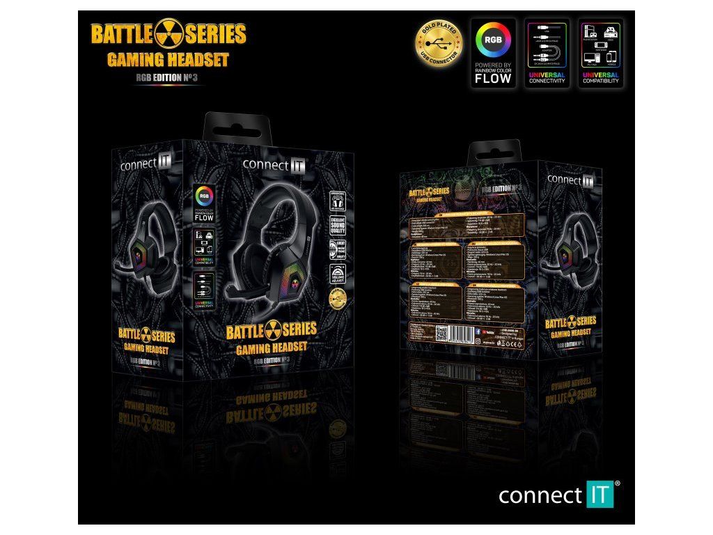Profesionální gamingová sluchátka se sklápěcím mikrofonem BATTLE RGB SERIES Edition 3 s RGB podsvícením pro hráče počítačových her