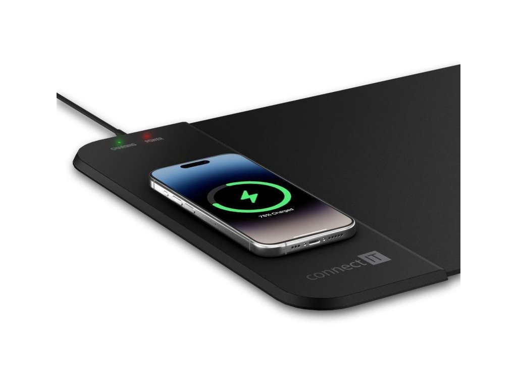 Na kvalitní a stylové podložce CONNECT IT CHARGE se projeví pozitivní vlastnosti vaší myši. Moderní materiál, ze kterého je podložka vyrobena, poskytuje myši dobře snímatelný podklad i pro nejjemnější laserové snímání. Dvouvrstvý materiál kombinující protiskluznost na spodní straně a ideální vlastnosti pro myši na vrchní straně se výraznou měrou zaslouží o ideální poměr mezi kontrolou nad myší a skluzem. Bezdrátové nabíjení umožňuje nabíjet zařízení pouhým položením na nabíječku, tedy bez nutnosti připojování napájecího kabelu do telefonu. Funguje na principu elektromagnetické indukce mezi dvěma cívkami, přičemž jedna cívka se nachází v telefonu samotném a druhá v bezdrátové nabíječce. Napájení podložky zajistí USB-C kabel, který je součástí balení.