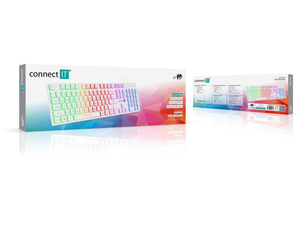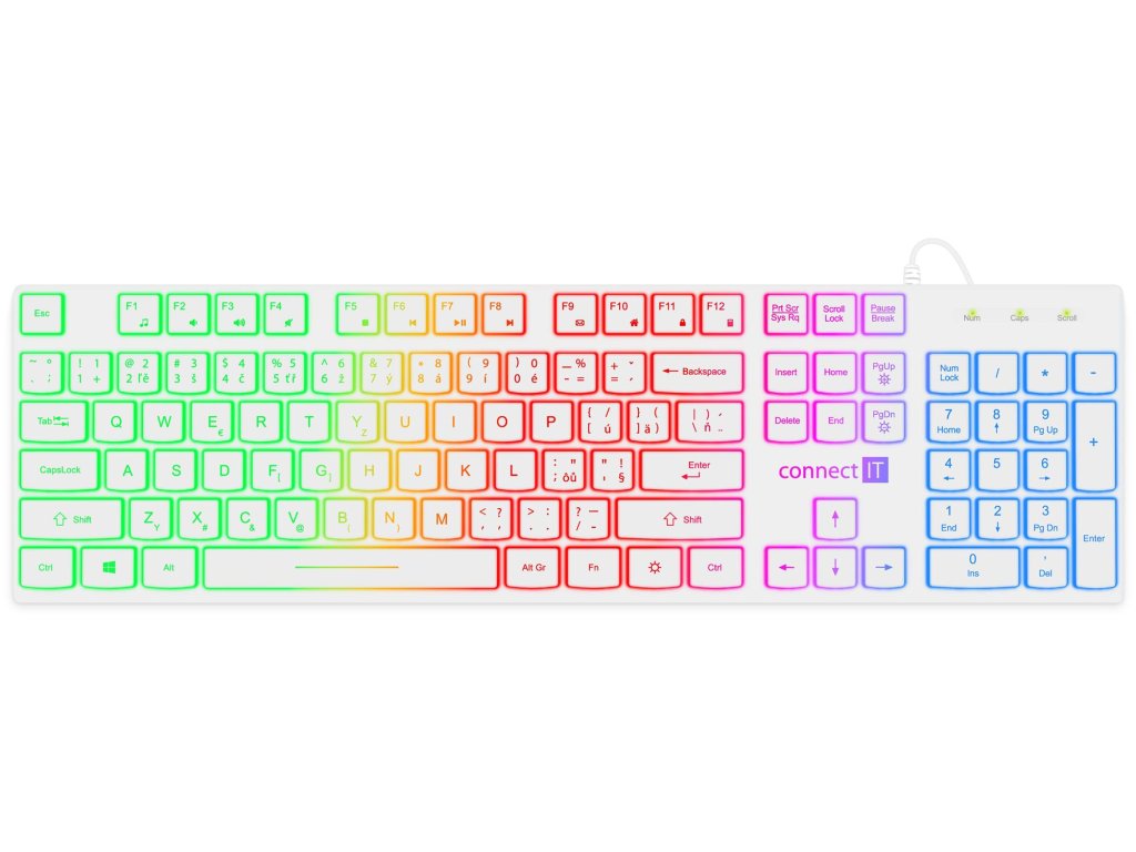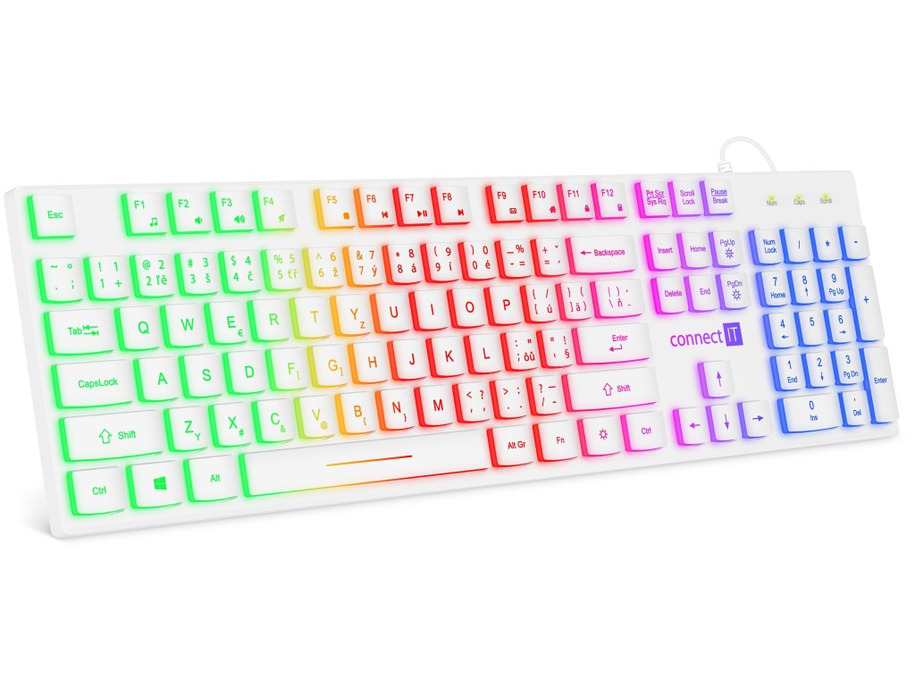 Connect IT Chocolate RNBW kancelářská podsvícená klávesnice, CZ + SK, bílá
