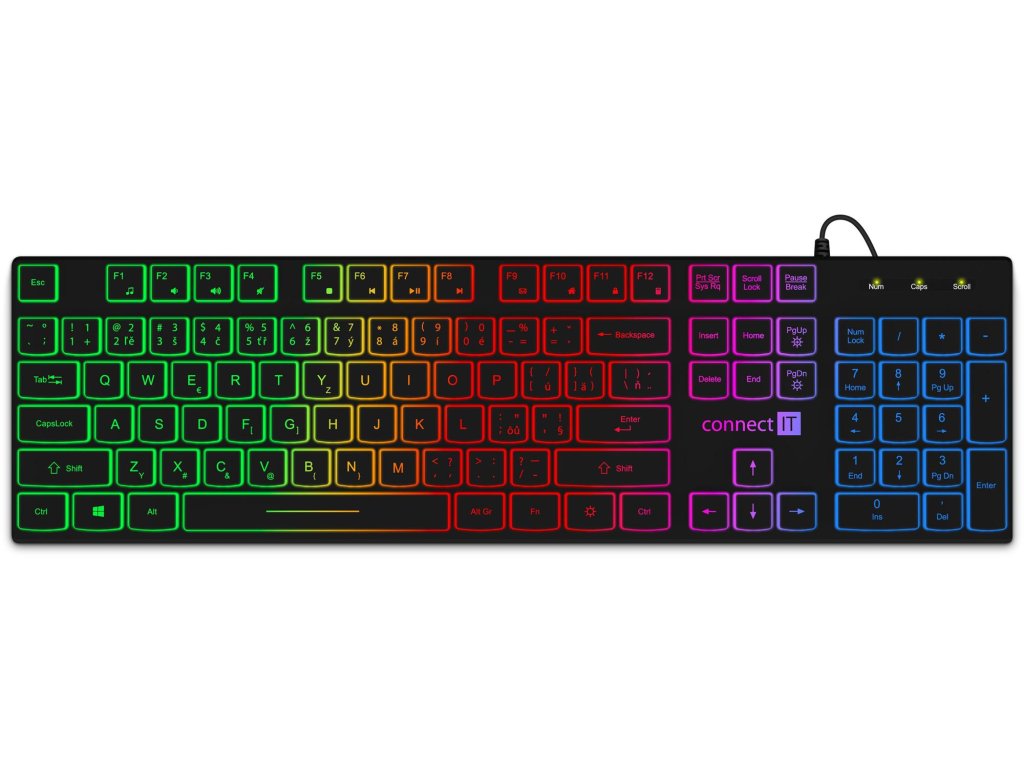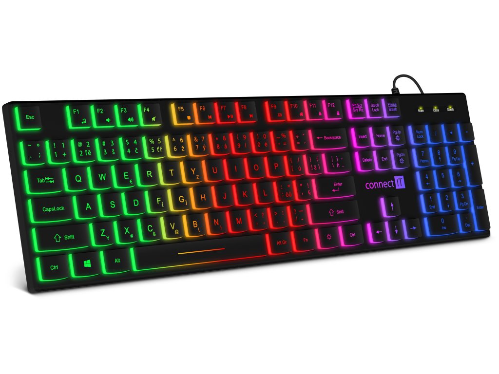 Connect IT Chocolate RNBW kancelářská podsvícená klávesnice, CZ + SK, černá