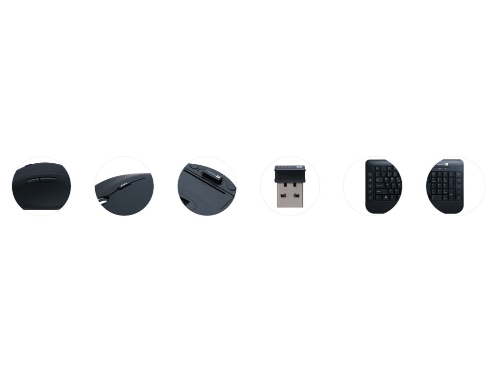 Sada bezdrátové klávesnice a myši v celočerném elegantním provedení. Klávesnice je vybavena multimediálními klávesami, klávesami s nízkým profilem a pogumovanou opěrkou rukou pro pohodlné psaní. K napájení celého setu jsou potřeba čtyři AAA baterie.