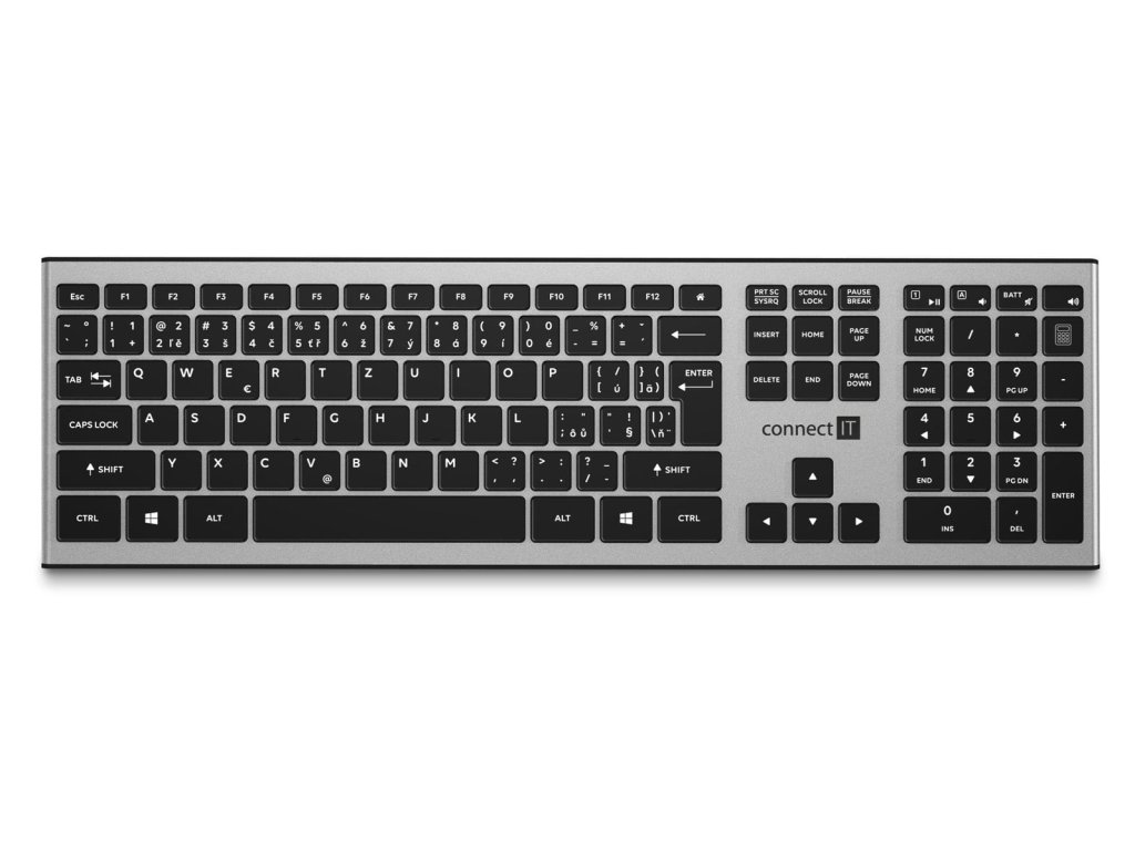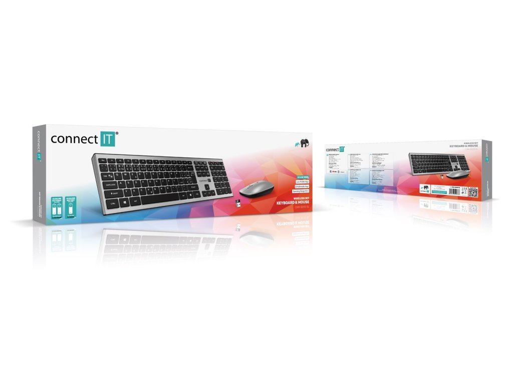Connect IT Combo bezdrátová stříbrná klávesnice + myš, (+2x AAA +1x AA baterie), CZ+SK layout