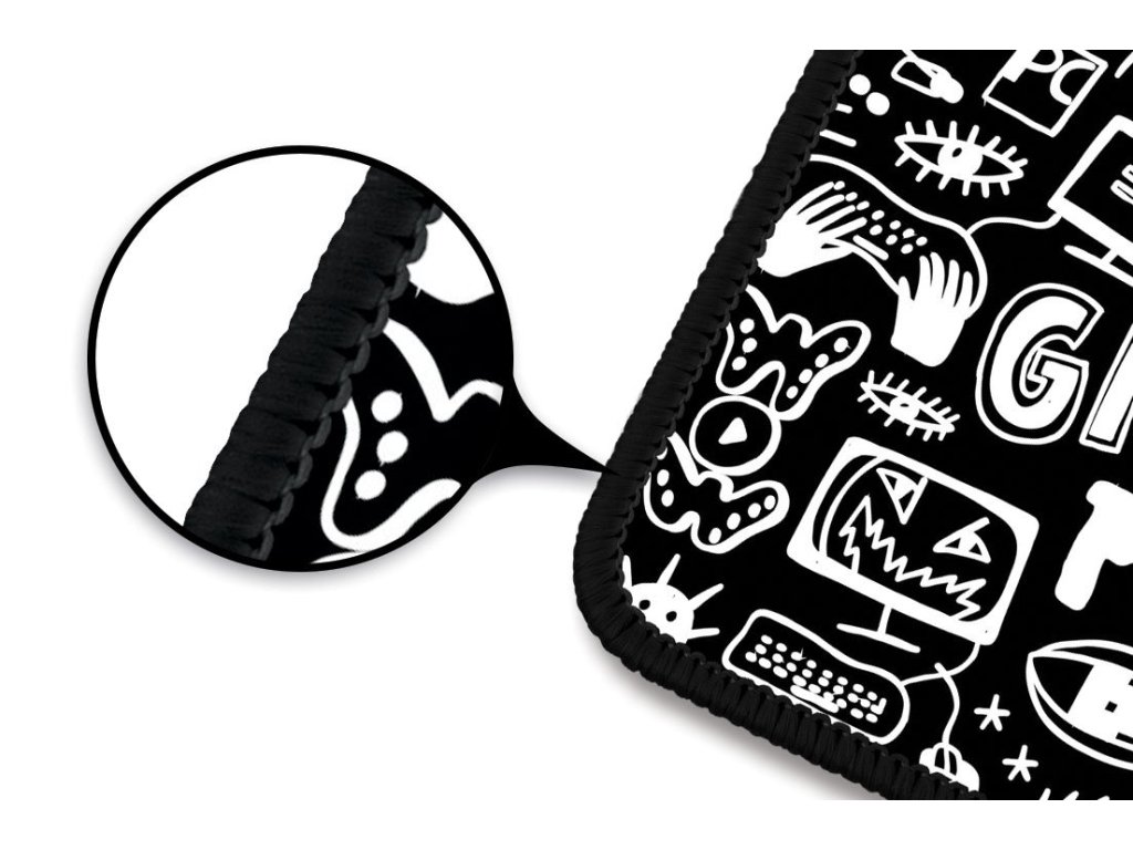 Profesionální podložka herní řady DOODLE určená i pro amatérské využití. Podložka má měkký, příjemný povrch s nadčasovým Doodle potiskem. Při velikosti herní plochy 320 × 245 mm vám nikdy nedojde prostor k pohybu. Velkou výhodou je pogumovaná protiskluzová spodní strana a antistatický povrch, po kterém bez problému bude jezdit každá myš. Materiál byl navržen tak, aby odpuzoval vodu a nečistoty. Podložka má obšité okraje speciální kvalitní nití.