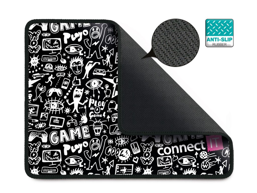 Na kvalitní a stylové podložce CONNECT IT DOODLE se projeví pozitivní vlastnosti vaší myši. Moderní materiál, ze kterého je podložka vyrobena, poskytuje myši dobře snímatelný podklad i pro nejjemnější laserové snímání. Dvouvrstvý materiál kombinující protiskluznost na spodní straně a ideální vlastnosti pro myši na vrchní straně se výraznou měrou zaslouží o ideální poměr mezi kontrolou nad myší a skluzem.