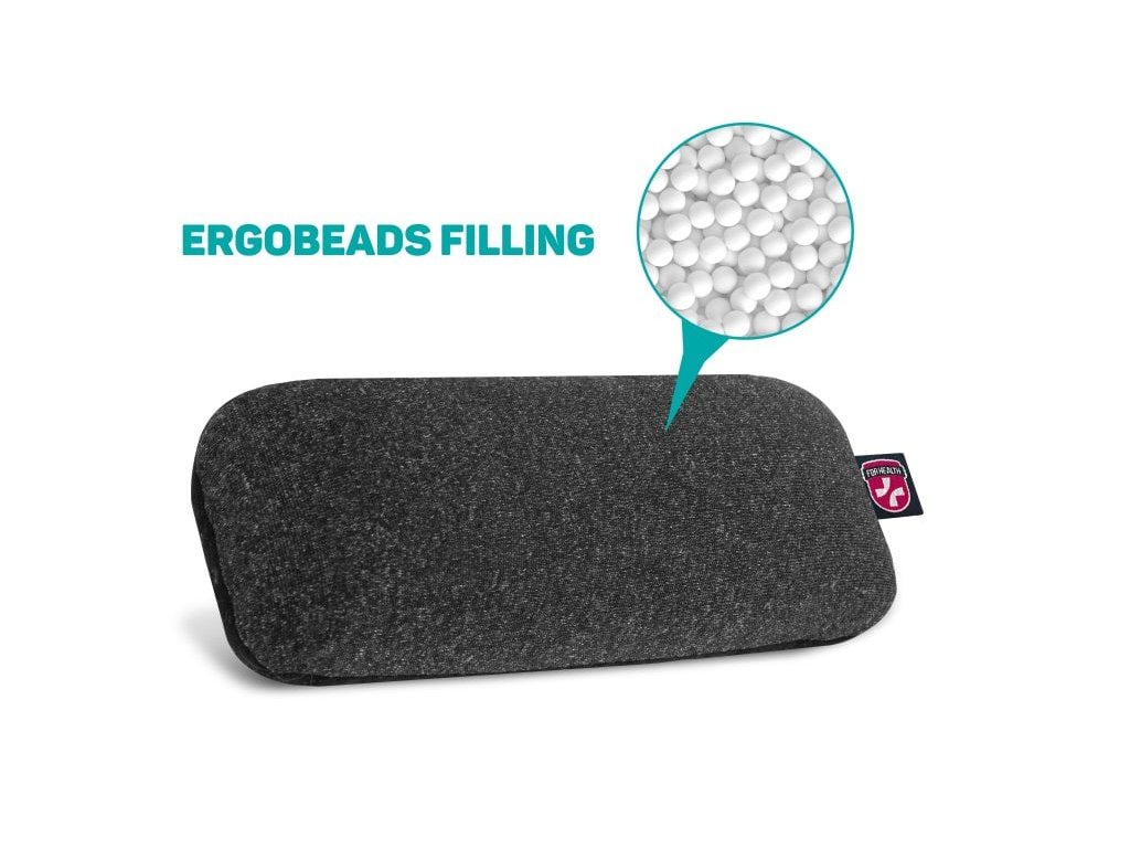 Zápěstní opěrka před myš plněná kuličkami ErgoBeads, díky kterým se opěrka vytvaruje a přizpůsobí každému zápěstí a zajistí tak celodenní komfort při práci na PC.