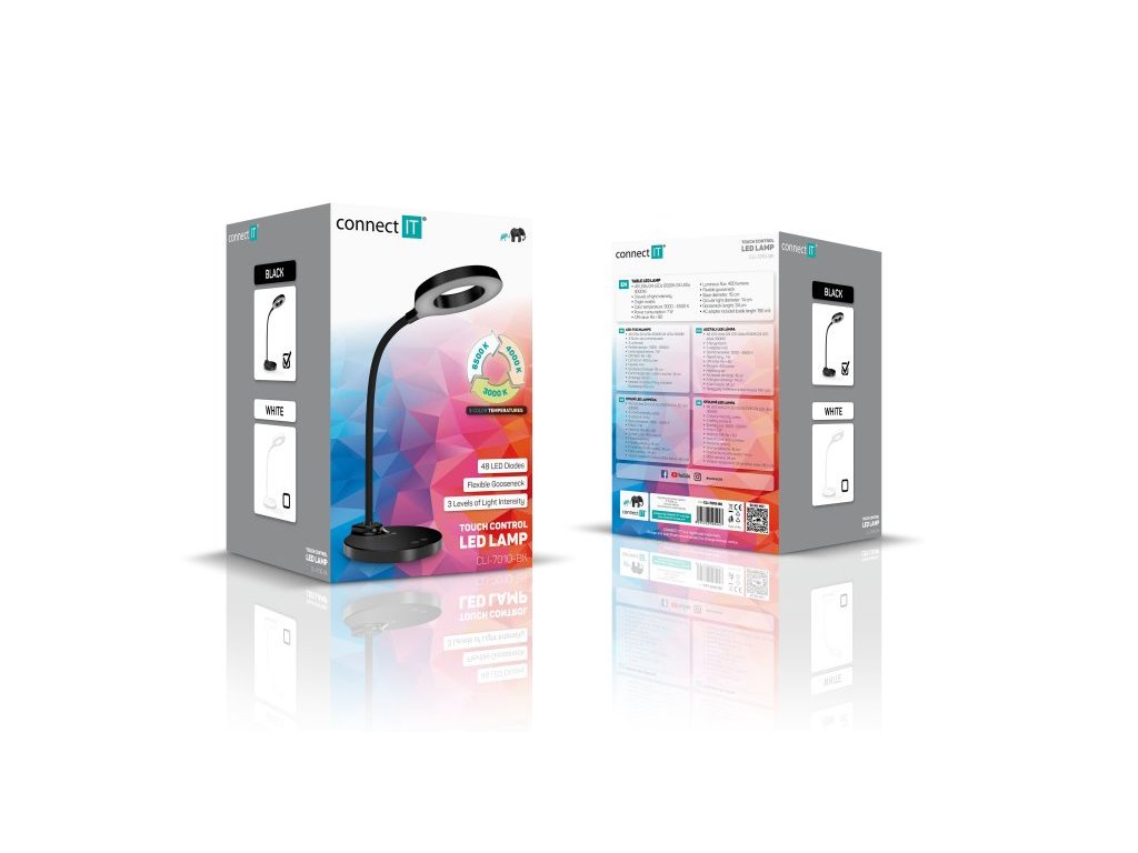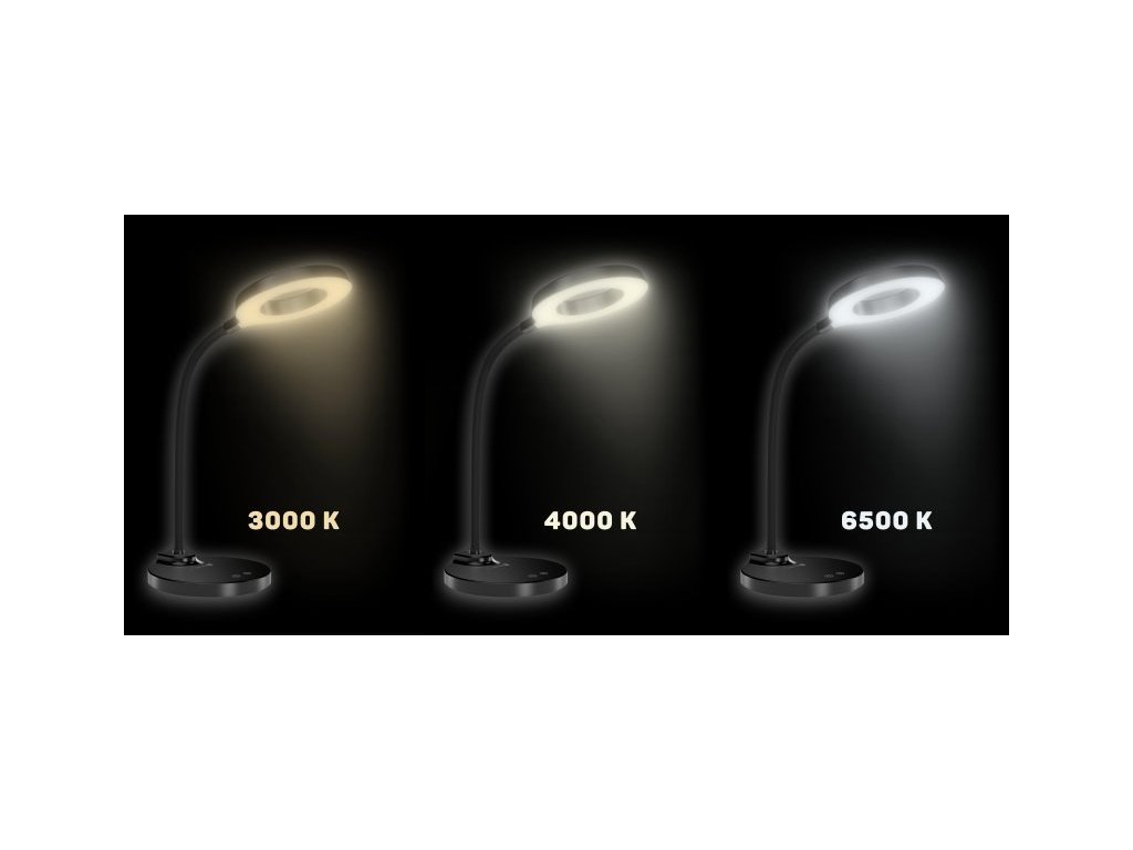 Díky flexibilnímu rameni nastavíte dokonalý úhel pro jakoukoliv práci. Lampička disponuje dvěma praktickými dotykovými spínači, které umožňují zapnout/vypnout lampu, nastavit 3 úrovně jasu světla nebo nastavit barevnou teplotu světla ve 3 různých úrovních (3000/4000/6500 K).