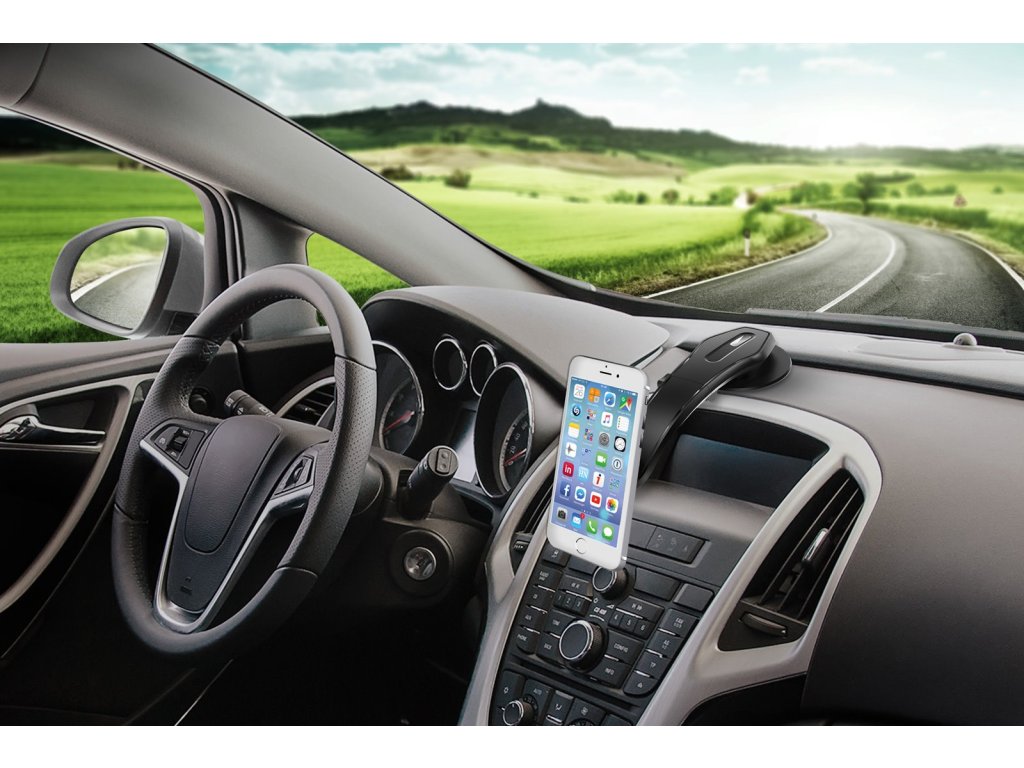 Možnost variability pozice na vhodném místě palubní desky splňuje bezpečnostní podmínky pro umístění mobilního telefonu v automobilu, kdy telefon nebrání řidiči ve výhledu. Velmi jednoduchá instalace pouhým přiložením gelové přísavky na palubní desku a nalepením 3M samolepkou. Na zadní část mobilního telefonu stačí pak už jen nalepit jednu z dodávaných kovových destiček nebo ji vložit do obalu telefonu. Telefon stačí pouze přiblížit a vlivem magnetické síly se sám aretuje na držáku. Držák nabízí totožnou stabilitu ve vertikální i v horizontální poloze.