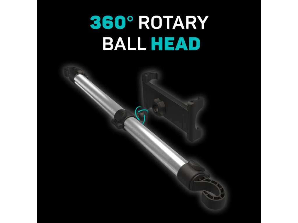 Držák má nastavitelné kleště a silikonové koncovky, takže se nemusíte obávat poškrábání vašeho zařízení během cesty. Kulovitá hlava držáku umožňuje rotaci v rozsahu 360 stupňů. Držák je vyroben z kvalitního hliníku a plastu v elegantním černém barevném provedení.