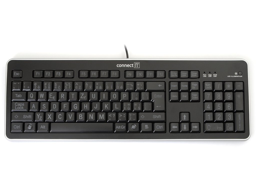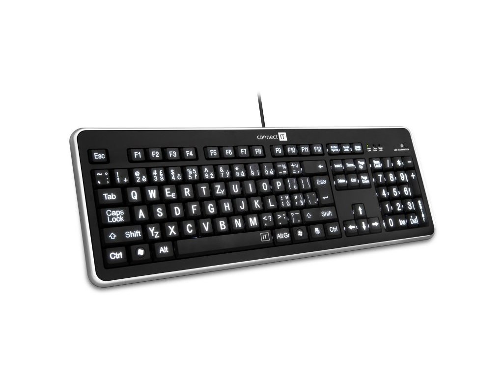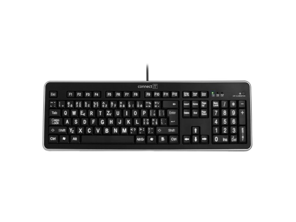 Connect IT LED bíle podsvícená klávesnice s VELKÝM fontem, USB