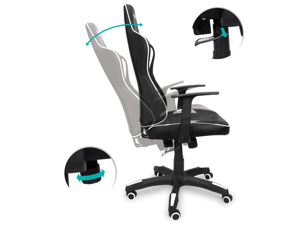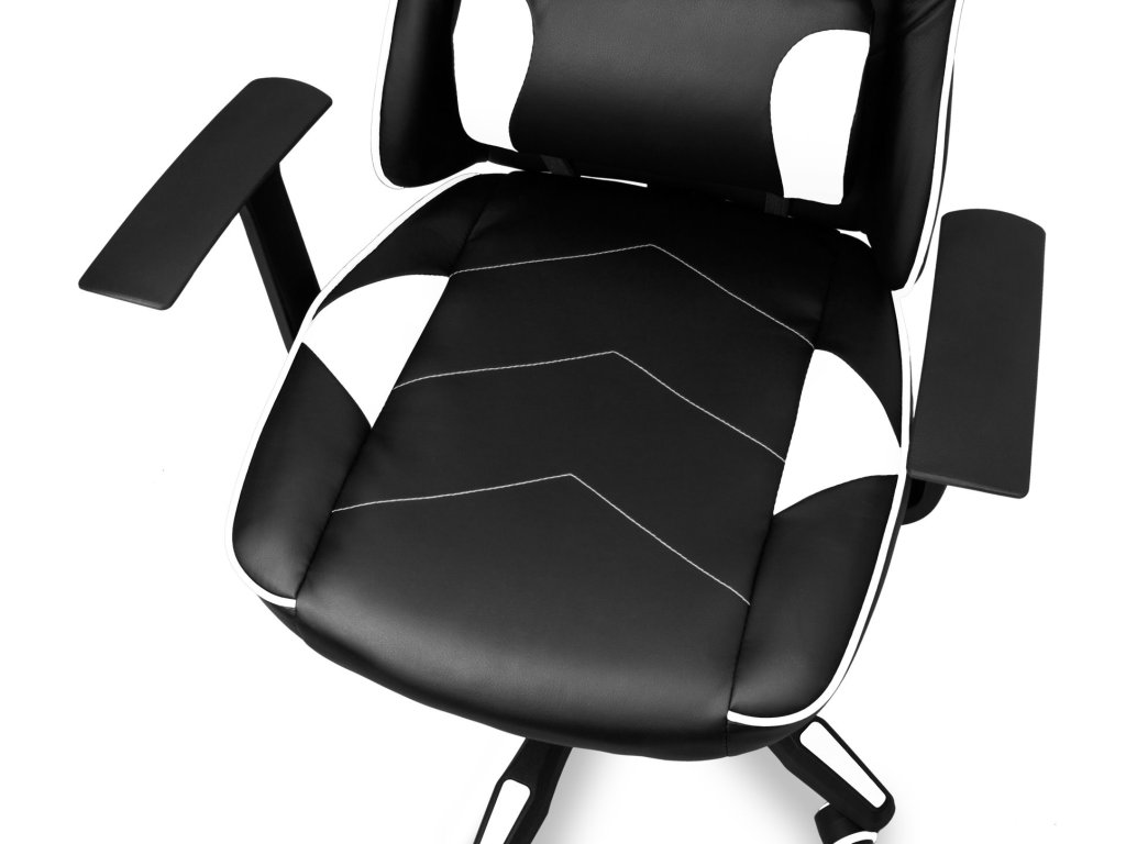 Herní židle LeMans Pro s ergonomickým designem, robustní rám, komfortní, PU kůže, nastavitelná výška náklonu, černo-bílá