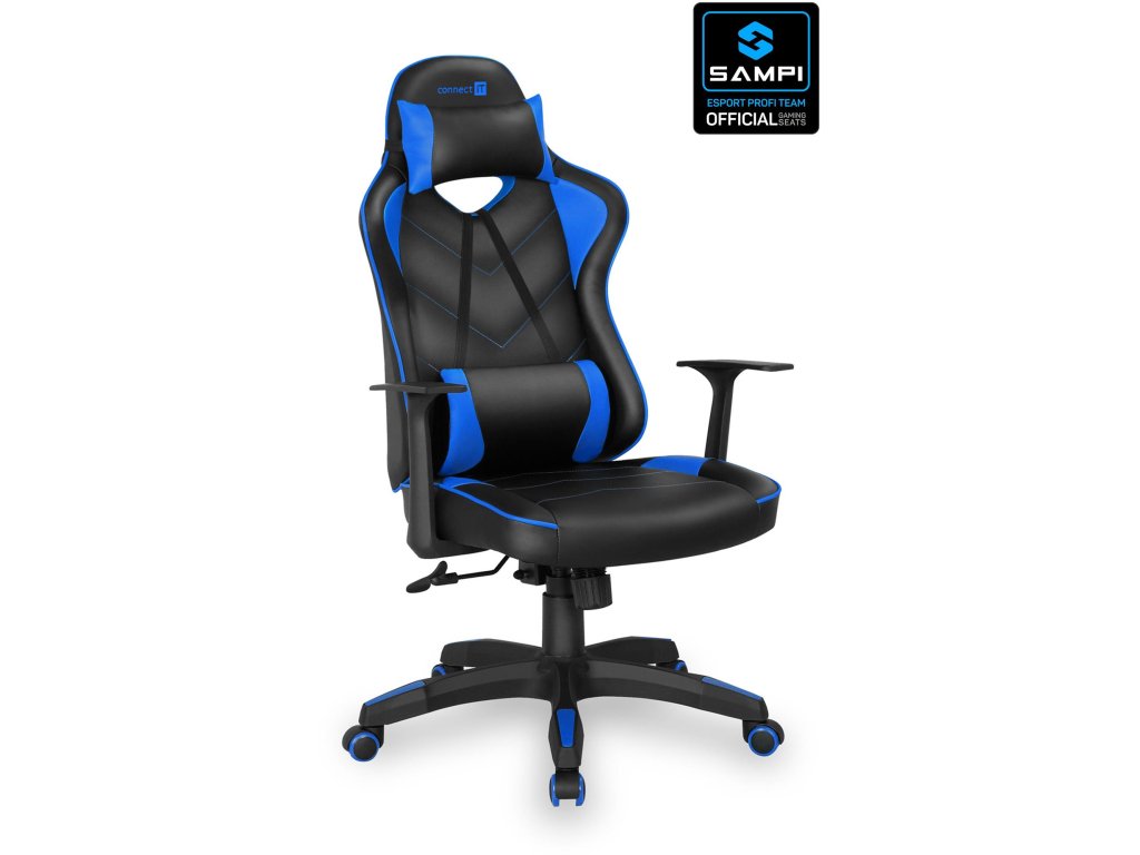 Herní židle LeMans Pro s ergonomickým designem, robustní rám, komfortní, PU kůže, nastavitelná výška náklonu, černo modré