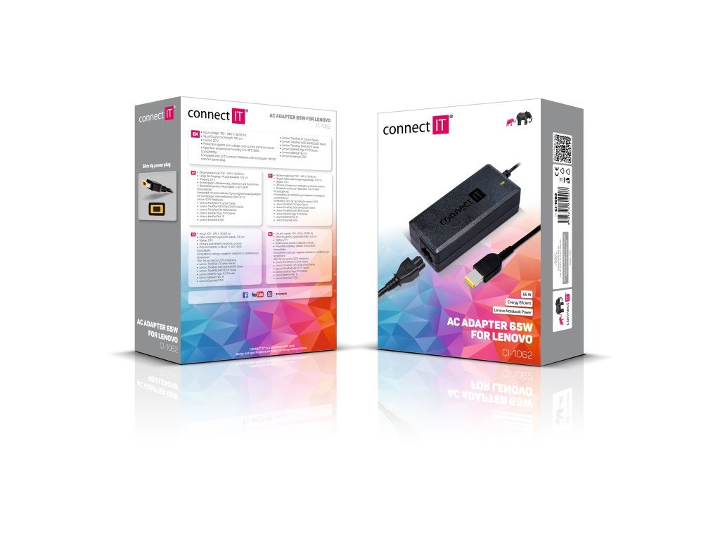 Univerzální napájecí adaptér pro notebooky Lenovo. Maximální výstupní výkon adaptéru je 65 W. Správnou funkci adaptéru signalizuje LED kontrolka. Adaptér je vybaven ochranami proti přepětí, nadproudu a zkratu, které brání poškození vašeho notebooku.