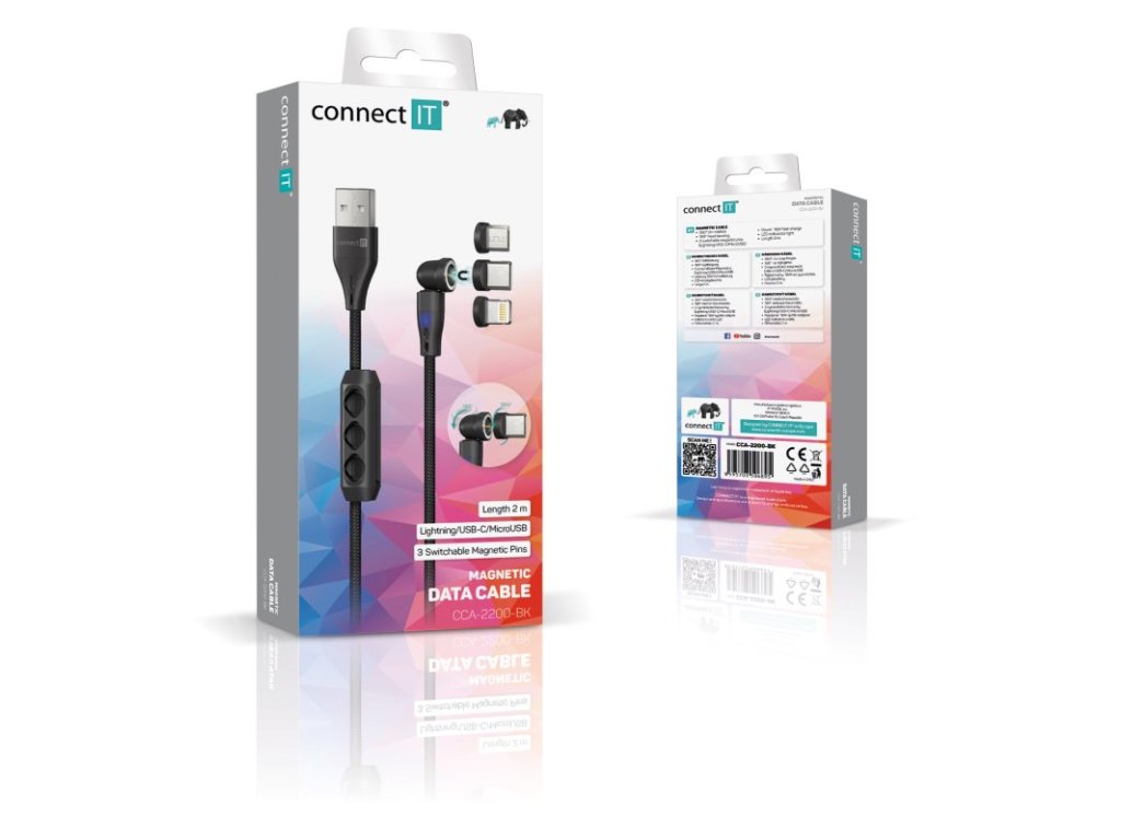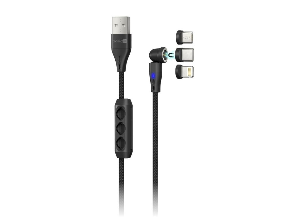 CONNECT IT Magnetic PowerLink 3in1 kabel (USB-C/Lightning/MicroUSB), 2m