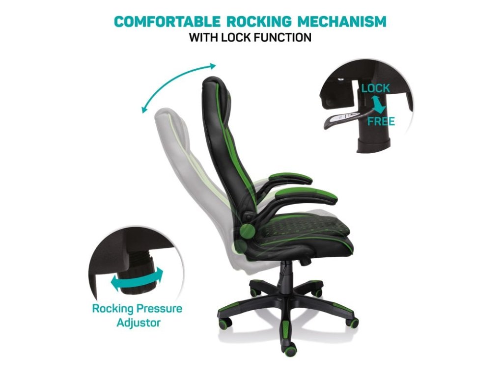 herní křeslo s ergonomickým tvarováním skořepiny i polstrování vyrobené z vysoce kvalitní PU kůže, černá/zelená