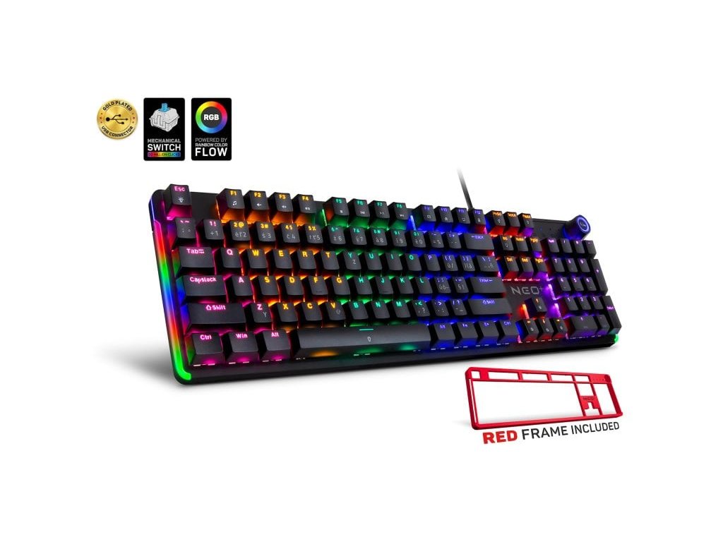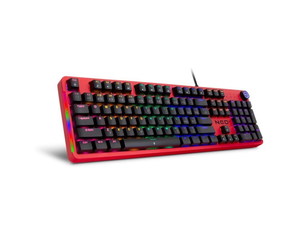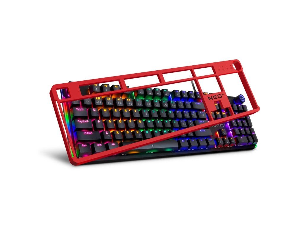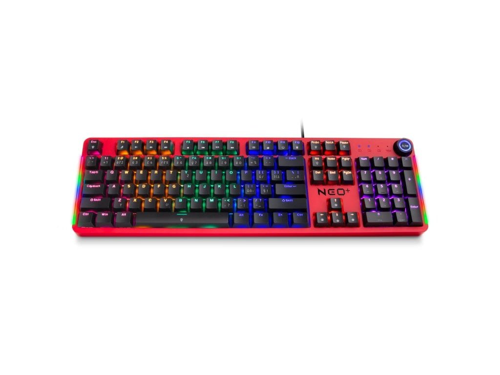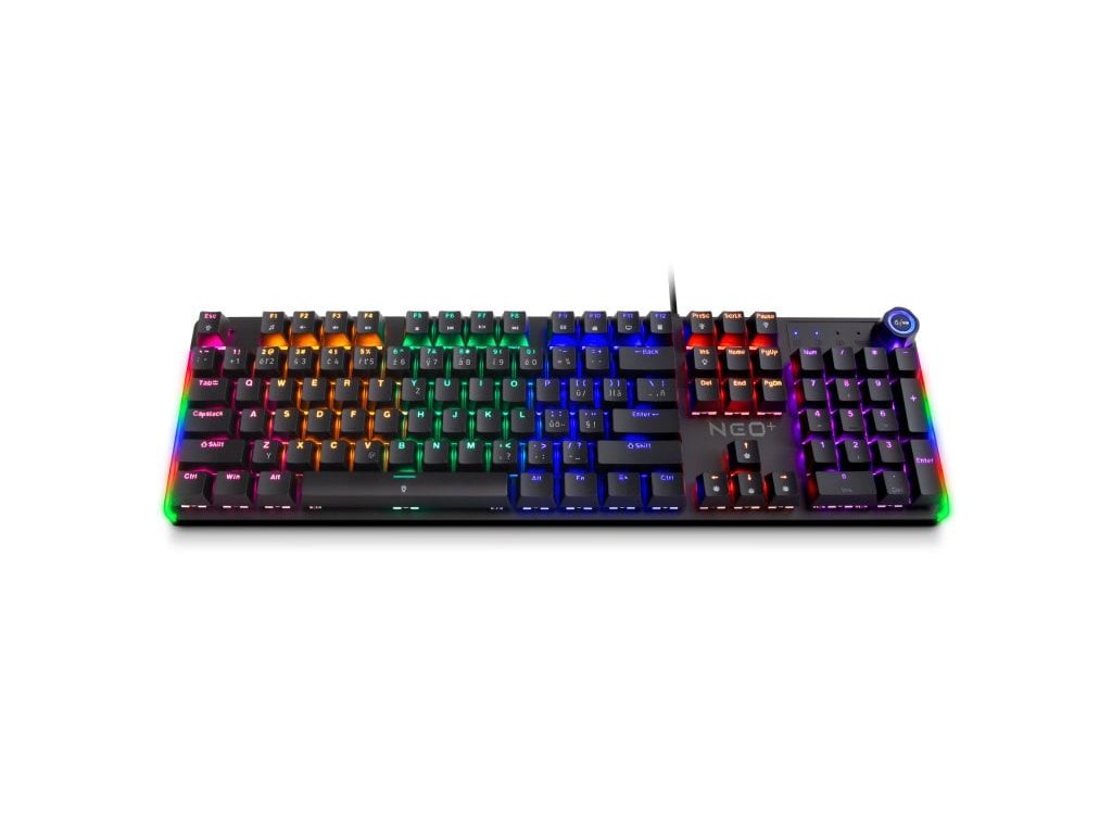 Profesionální mechanická klávesnice NEO2 + series pro hráče počítačových her v českém a slovenském layoutu s devíti módy barevného Rainbow podsvícení. K dispozici je 12 multimediálních kláves a otočné kolečko pro nastavení hlasitosti a dalších funkcí.