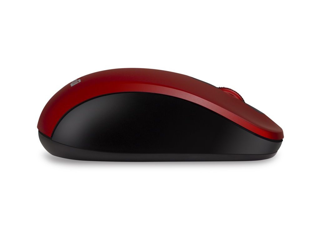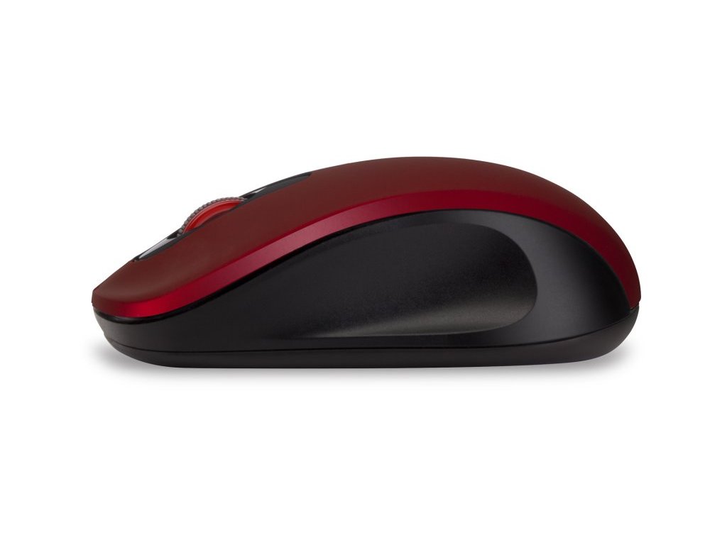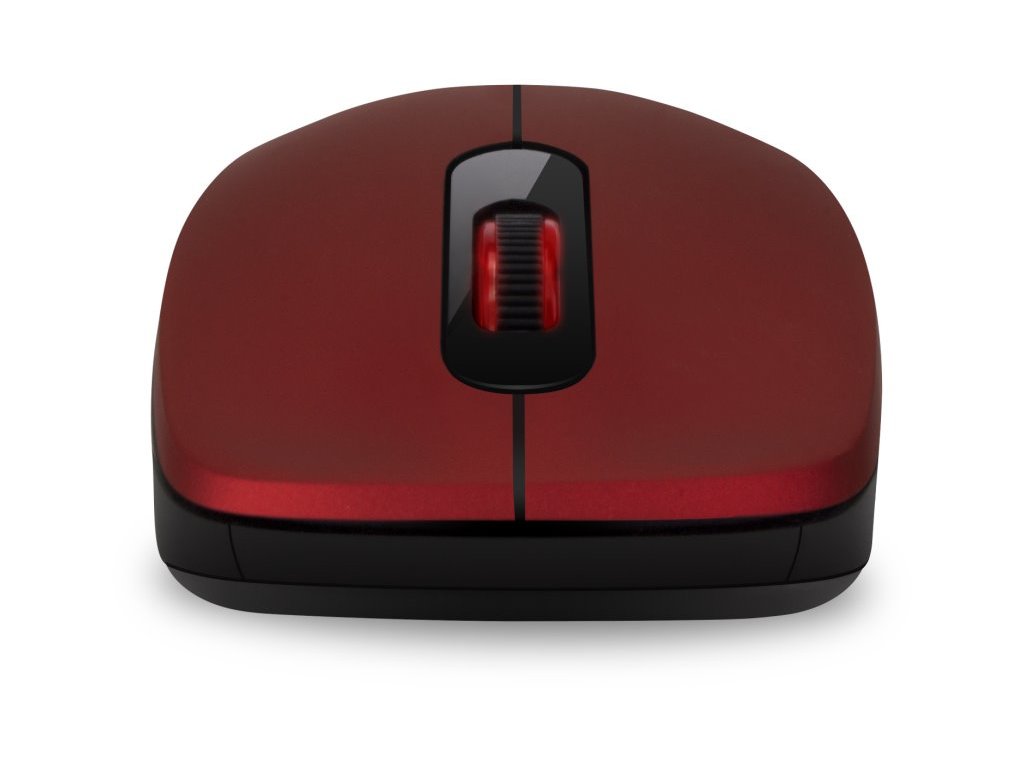 myš optická, bezdrátová, tichá, nano přijímač s konektorem USB, 1200dpi, 3 tlačítek, dosah až 10m, napájení 1x AA baterie součátí balení, červená