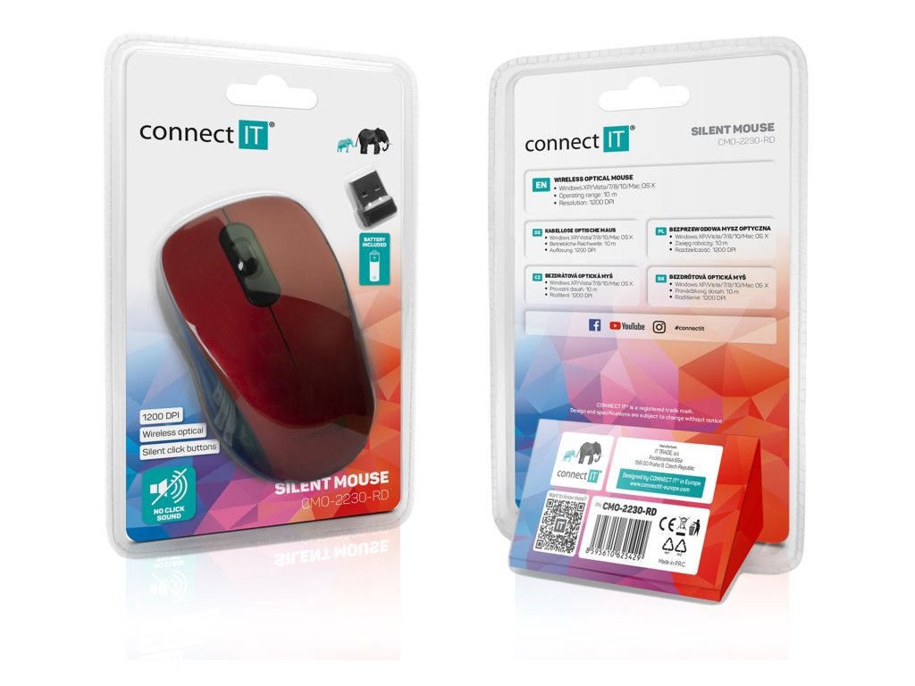 Bezdrátová optická myš CONNECT IT "Mute" s tichým chodem tlačítek, které při klikání nevydávají žádný zvuk najde své uplatnění všude tam, kde uživatel vyžaduje absolutní soukromí a klid..