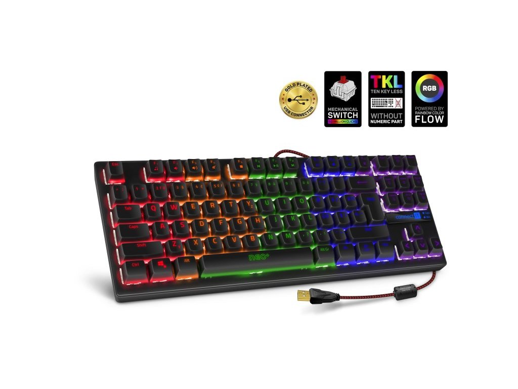 Profesionální mechanická klávesnice NEO+ series pro hráče počítačových her, CZ+SK layout, mechanické spínače OUTEMU RED, kompaktní TKL design, 23 módů barevného podsvícení