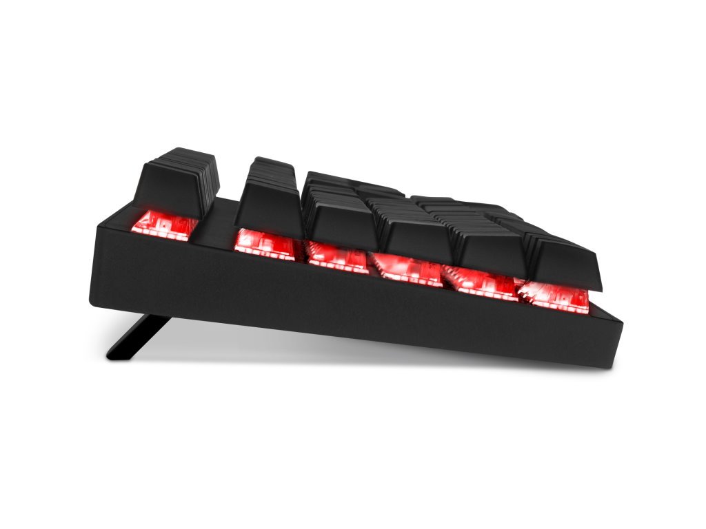 Kromě klasických herních funkcí, tato klávesnice disponuje mechanickými spínači OUTEMU RED s životností až 50 miliónů kliknutí a také je unikátní svým TKL (Ten Key Less) designem, který je bez numerické části a díky tomu vzniká na stole větší prostor pro pohyb myši na podložce. Další výhodou této klávesnice spočívá v její základně, vedou z ní totiž 3 drážky v různých směrech, díky kterým vám nebude překážet kabel od klávesnice. Samozřejmostí je u této série prémiový oplet přívodního kabelu a pozlacený USB konektor. V balení také naleznete arch 7 promo samolepek "NEO".