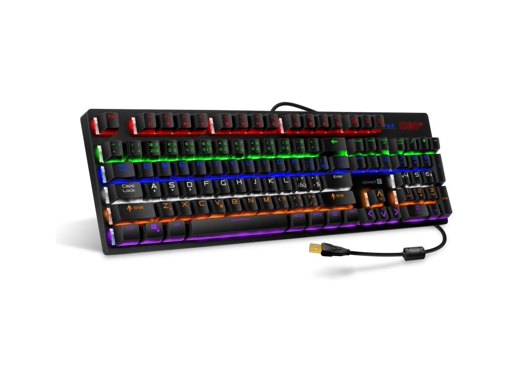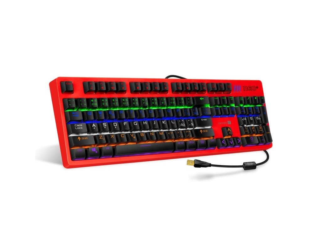 herní klávesnice, Profesionální mechanická klávesnice NEO+ series pro hráče počítačových her v českém a slovenském layoutu s celkem 22 módy barevného rainbow podsvícení a pětistupňovou regulací intenzity podsvícení.