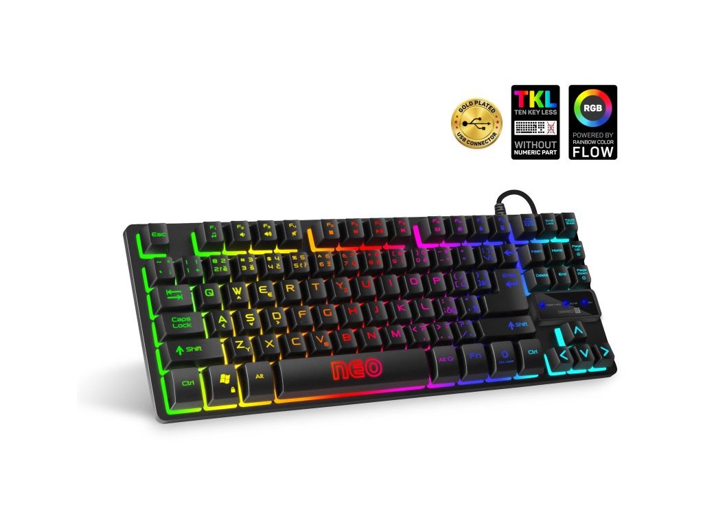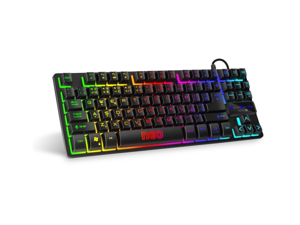 Profesionální gamingová klávesnice NEO Compact je unikátní svým TKL (Ten Key Less) designem, který je bez numerické části a díky tomu vzniká na stole větší prostor pro pohyb myši na podložce. Tato klávesnice je v českém a slovenském layoutu s 2 módy barevného rainbow podsvícení a třístupňovou regulací intenzity podsvícení.
