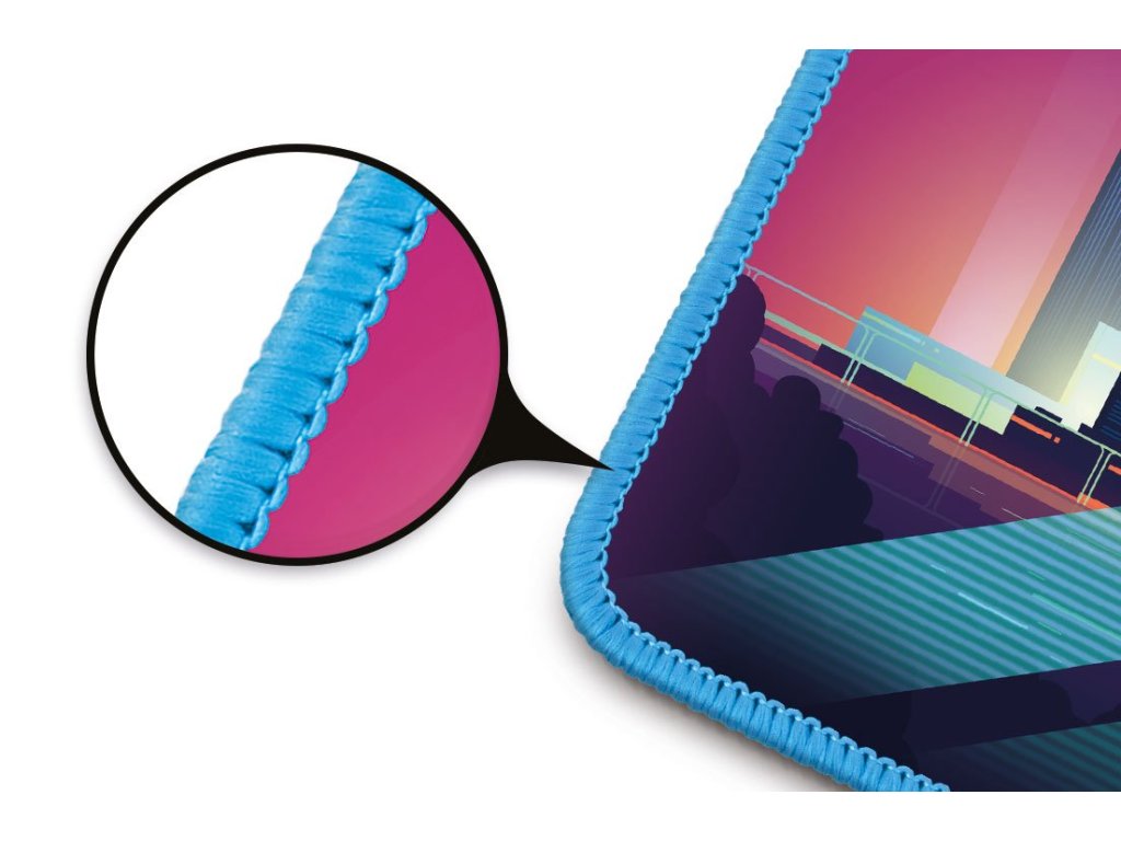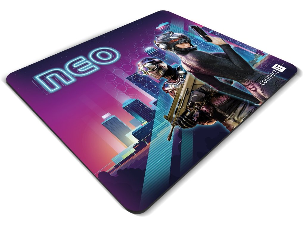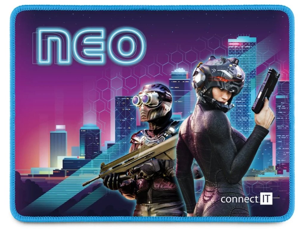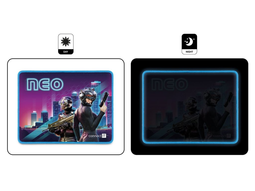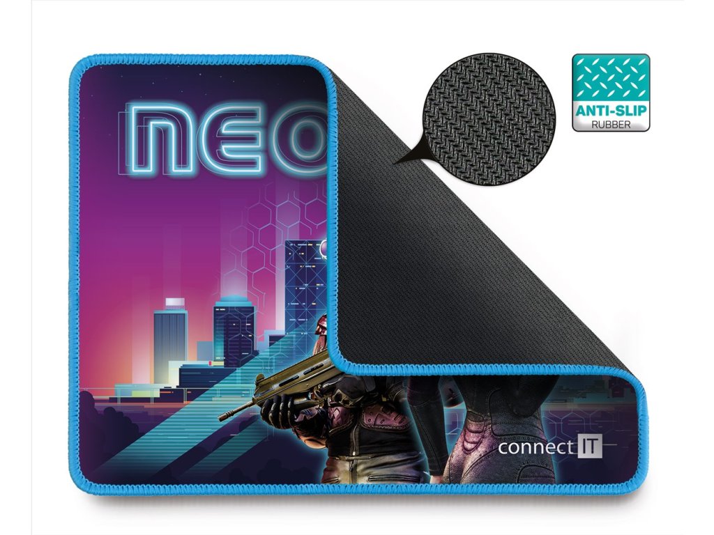 Profesionální podložka herní řady NEO určená i pro amatérské využití. Podložka má měkký, příjemný povrch s nadčasovým cyber potiskem. Při velikosti herní plochy 320 × 245 mm vám nikdy nedojde prostor k pohybu. Velkou výhodou je pogumovaná protiskluzová spodní strana a antistatický povrch, po kterém bez problému bude jezdit každá myš. Materiál byl navržen tak, aby odpuzoval vodu a nečistoty. Podložka má obšité okraje speciální kvalitní svítící nití, která ve tmě jemně svítí.