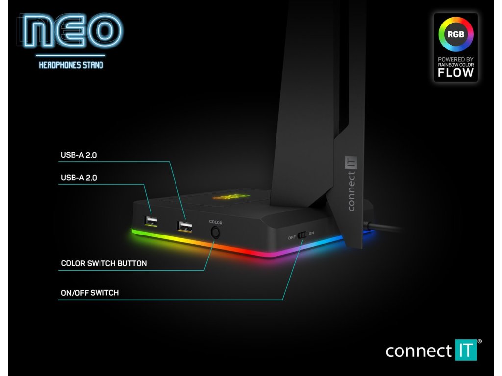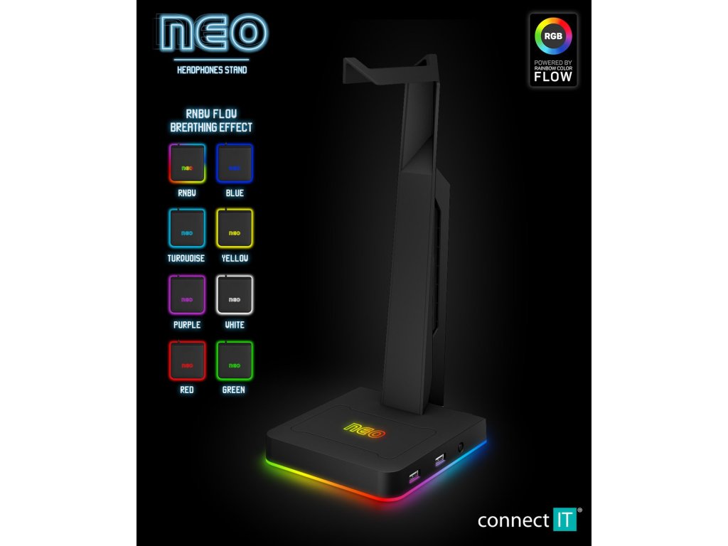 CONNECT IT NEO Stand-It RGB stojánek na sluchátka + USB hub