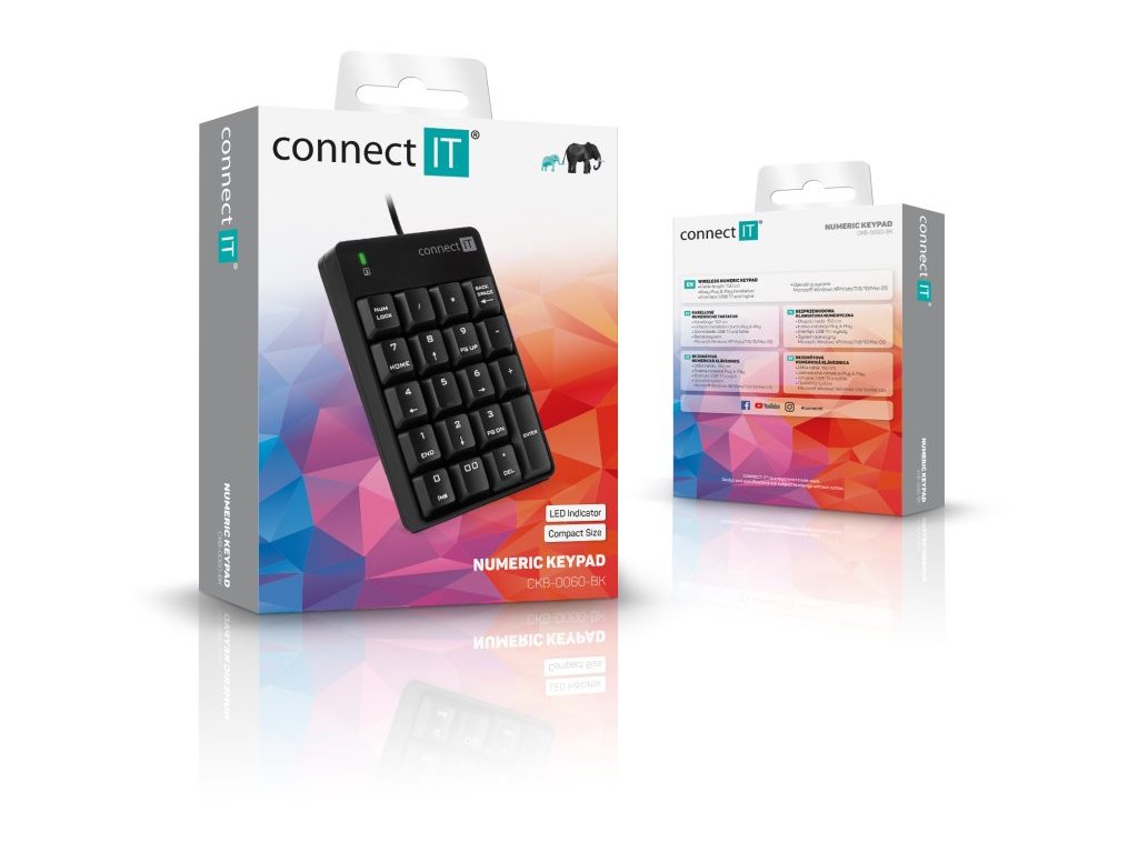 Drátová externí numerická klávesnice určena pro domácí i kancelářské profesionální použití slouží jako přídavná klávesnice pro výpočty. Své uplatnění najde zejména u notebooků, které nemají samostatnou numerickou část a čísla je na nich nutno zadávat dvojstiskem kláves přes Shift klávesu. Výborně poslouží i v případě, kdy potřebujete mít klávesnici na druhé straně a ovládat ji levou rukou. Ideální pro všechny, kteří pracují s účetnictvím, tabulkami, výpotovými a finančními aplikacemi.