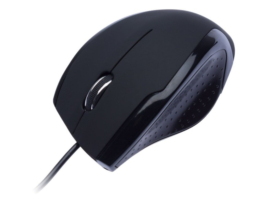 myš optická, USB, černá, kolečko, kabel 130cm, ergonomický tvar, součástí balení je gelová podložka