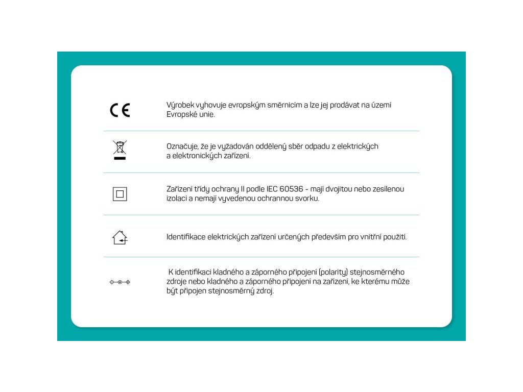 Výrobek byl testován a certifikován v evropském testovacím centru a splňuje nejpřísnější bezpečnostní požadavky a nejnovější normy, takže umožňuje zapojení spotřebičů o celkovém příkonu až 2500 W.