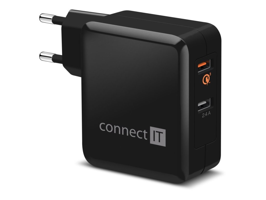 Connect IT Quick Charge 3.0, 2x USB (3,4A), černý