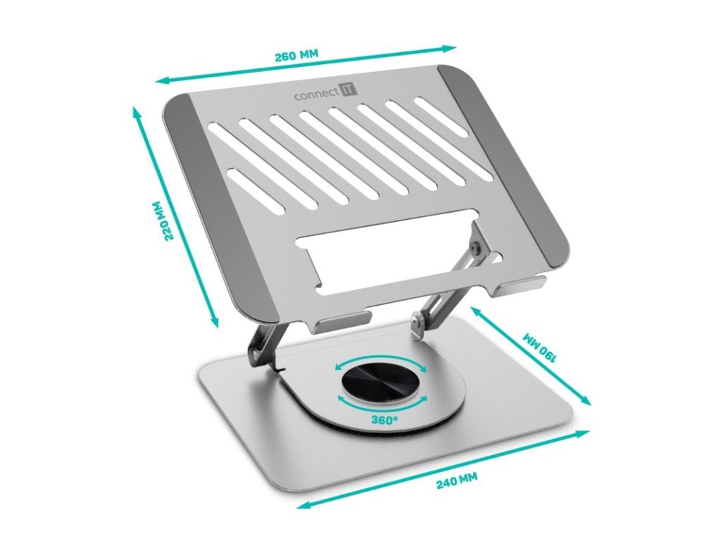 CONNECT IT Rotary otočný stojánek na notebook, stříbrná