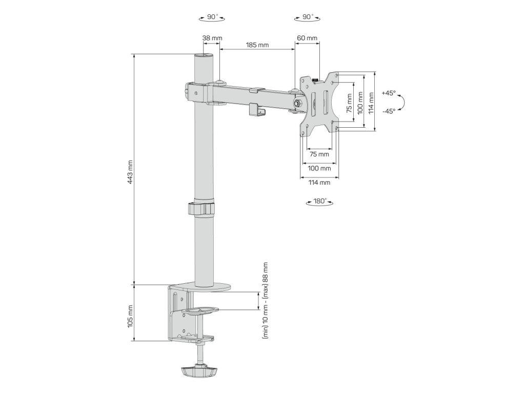 stolní držák pro monitor 13" - 32", standard VESA max 75x75, 100x100, nosnost 8kg, otočný, možnost naklánění