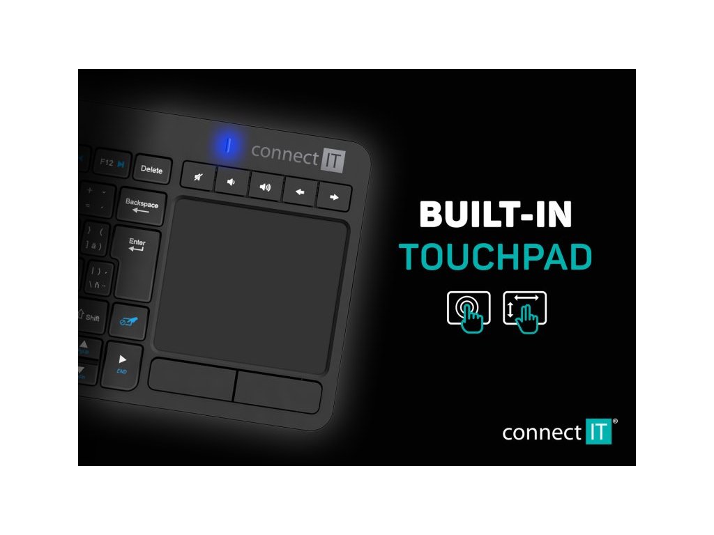 Bezdrátová, tichá klávesnice s touchpadem CONNECT IT "Touch" je ideální pro domácí použití, především k SmartTV a jiných chytrých zařízení.