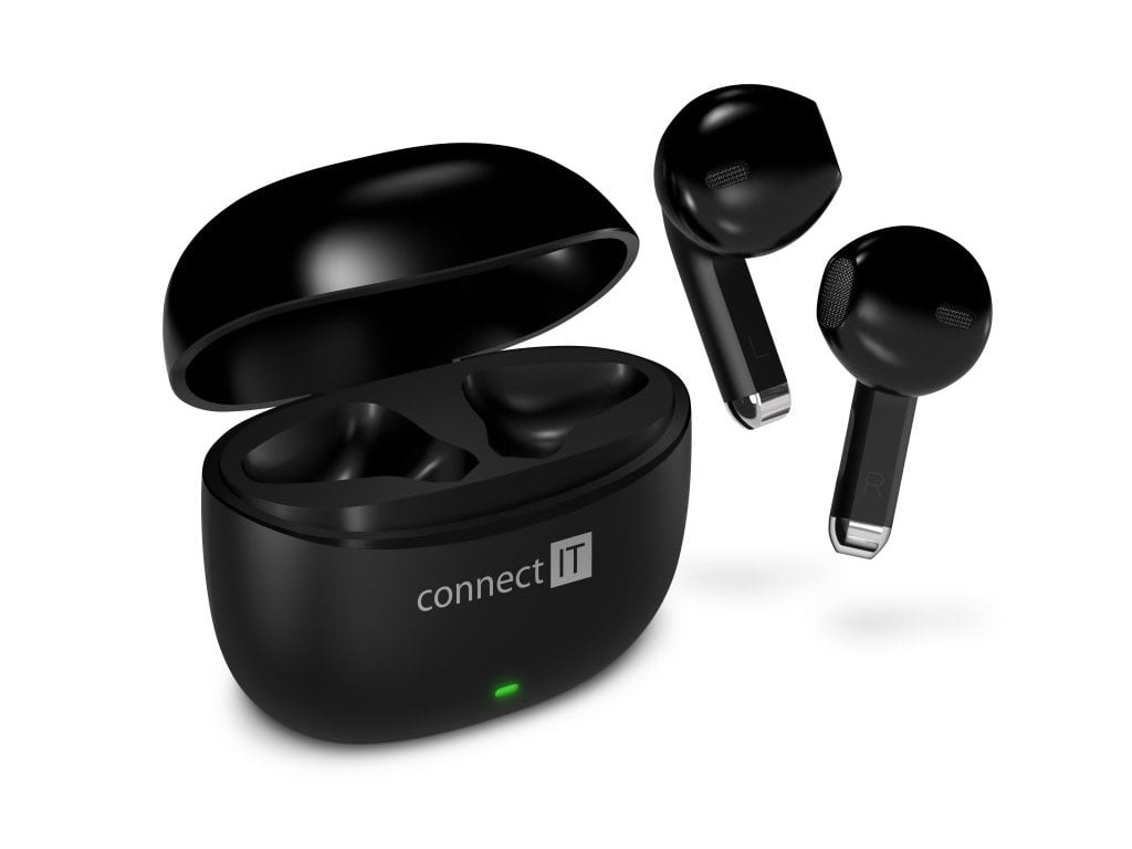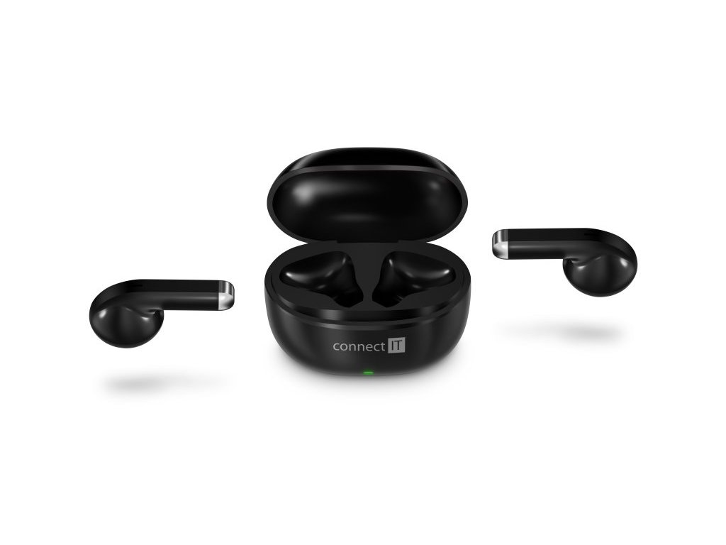 CONNECT IT True Wireless SonicBass sluchátka do uší s mikrofonem, ČERNÁ