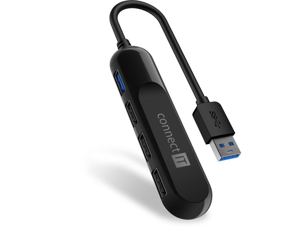 hub USB 3.0, 4x port USB-A, kabel 10cm, černá