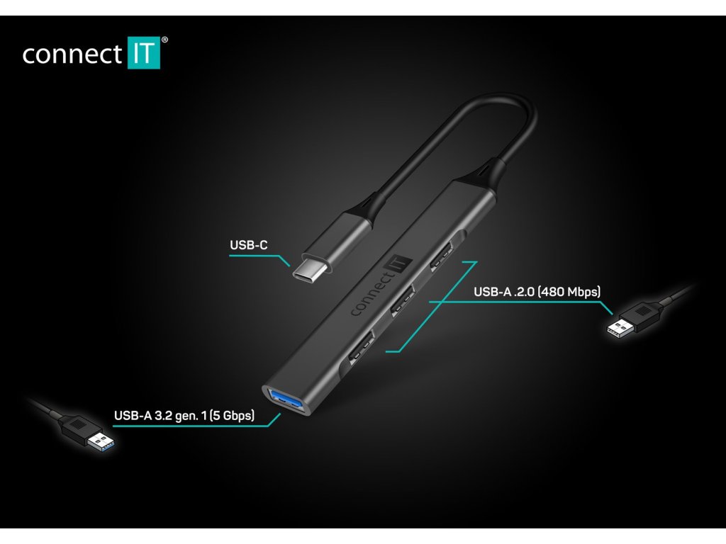 Connect IT USB-C hub, (1xUSB-A 3.0, 3xUSB-A 2.0), externí, antracitový