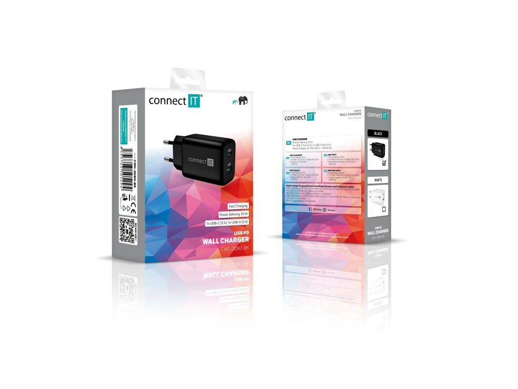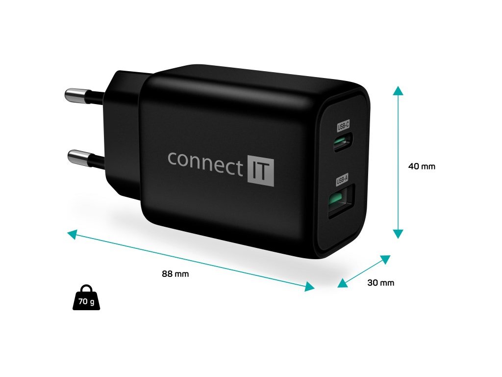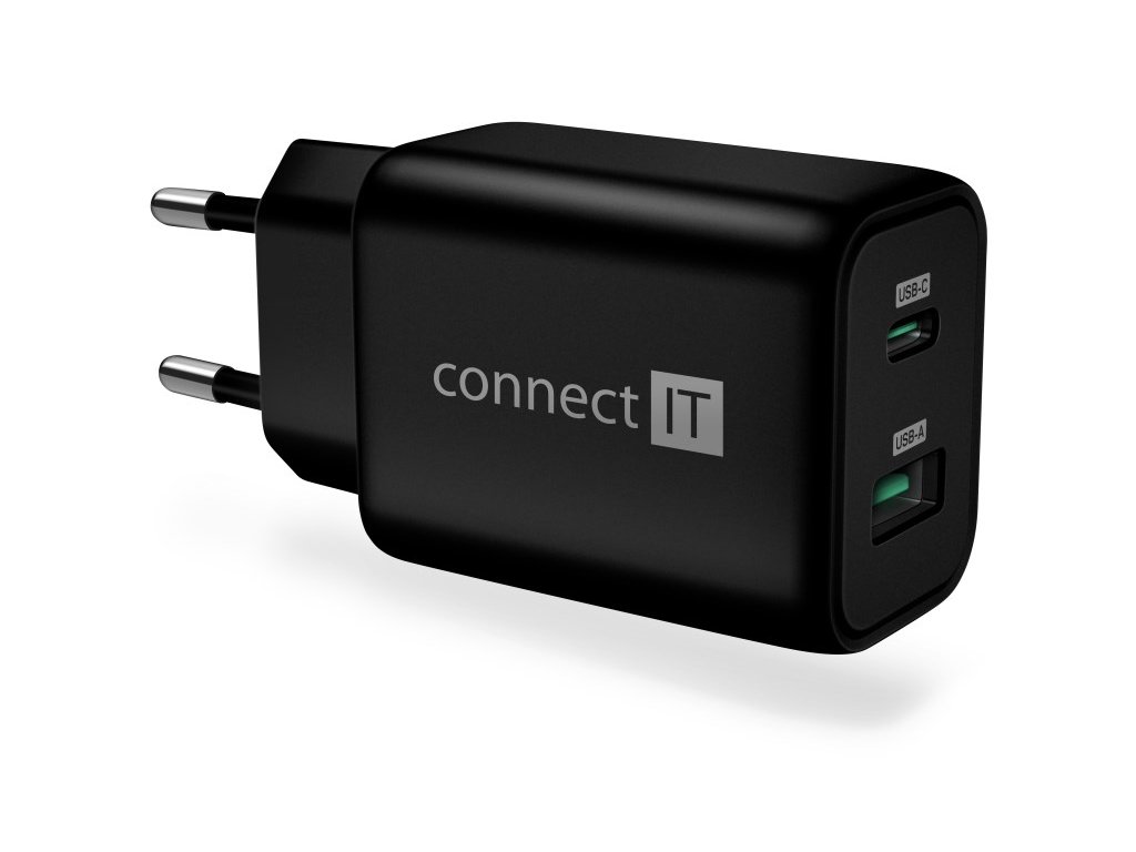 CONNECT IT Wanderer2 GaN nabíjecí adaptér 1×USB-C + 1xUSB-A, 33W PD, černá