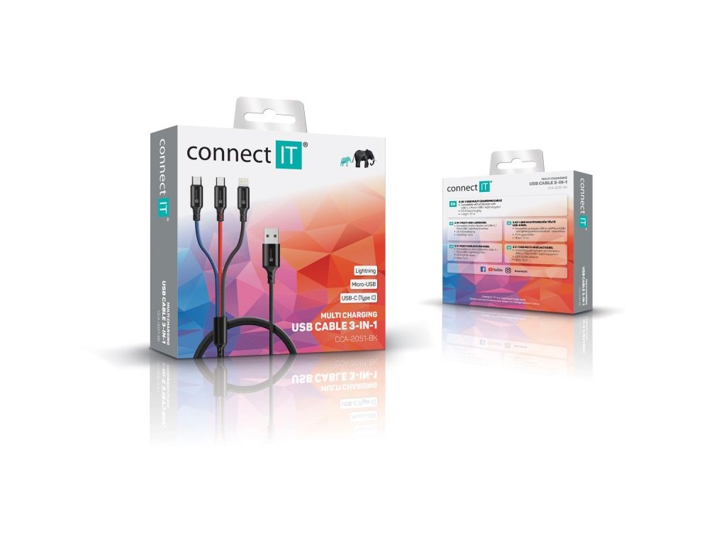 Connect IT Wirez 3in1 USB-C & microUSB & Lightning, 1.2m