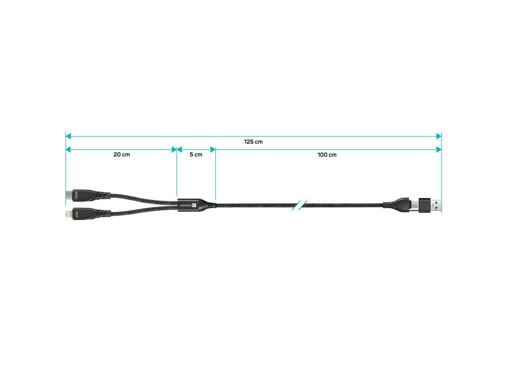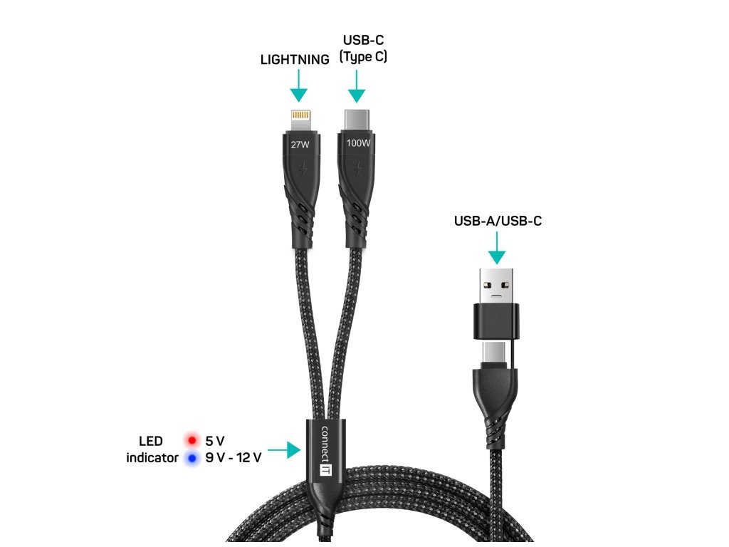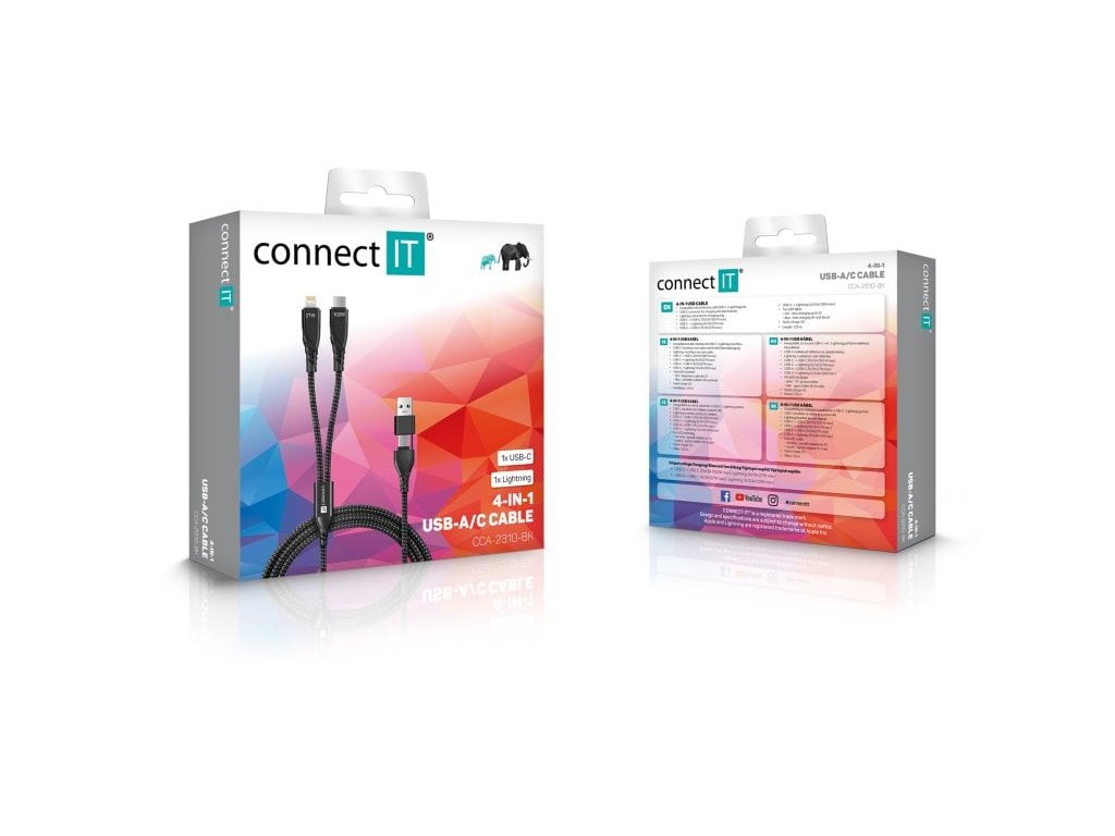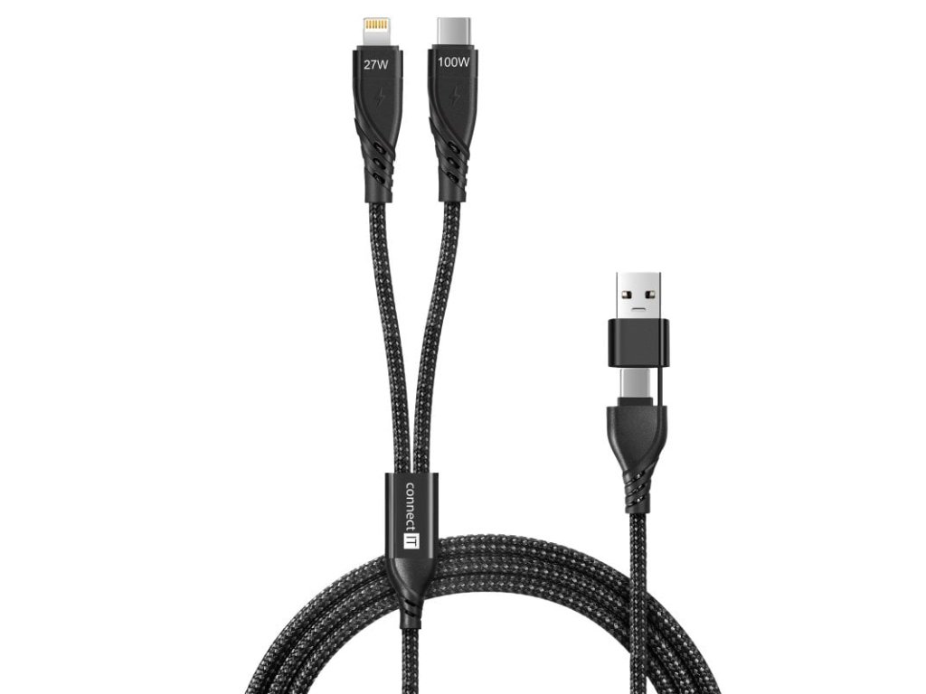 CONNECT IT Wirez 4in1 1x USB-C, 1x Lightning, 1,25 m, ČERNÝ