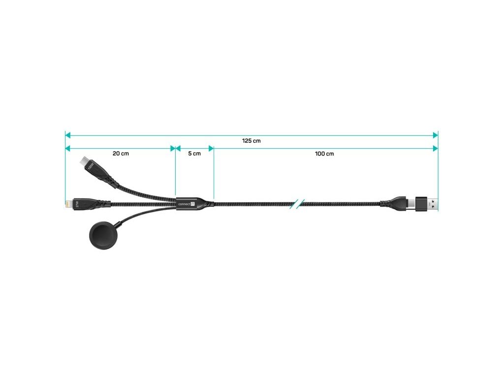 CONNECT IT Wirez 6in1 1x USB-C 1x Lightning 1x Watch charger 1,25 m ČERNÝ