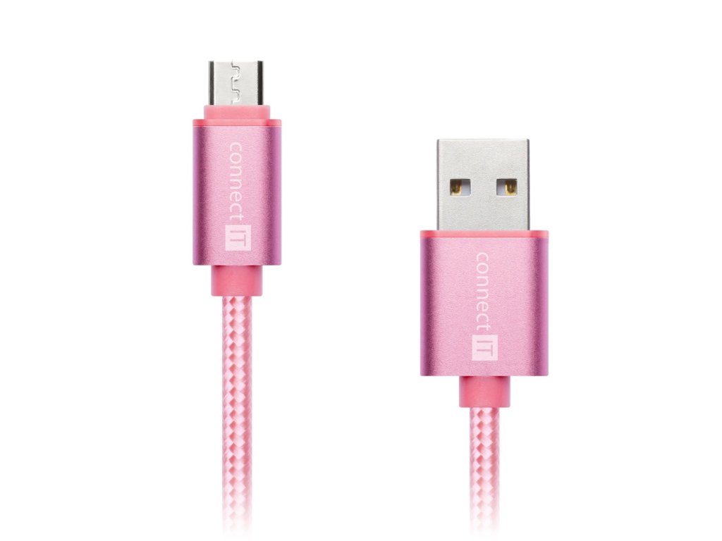 Connect IT Wirez Premium Metallic micro USB, datový kabel, růžovo zlatý, 1 m